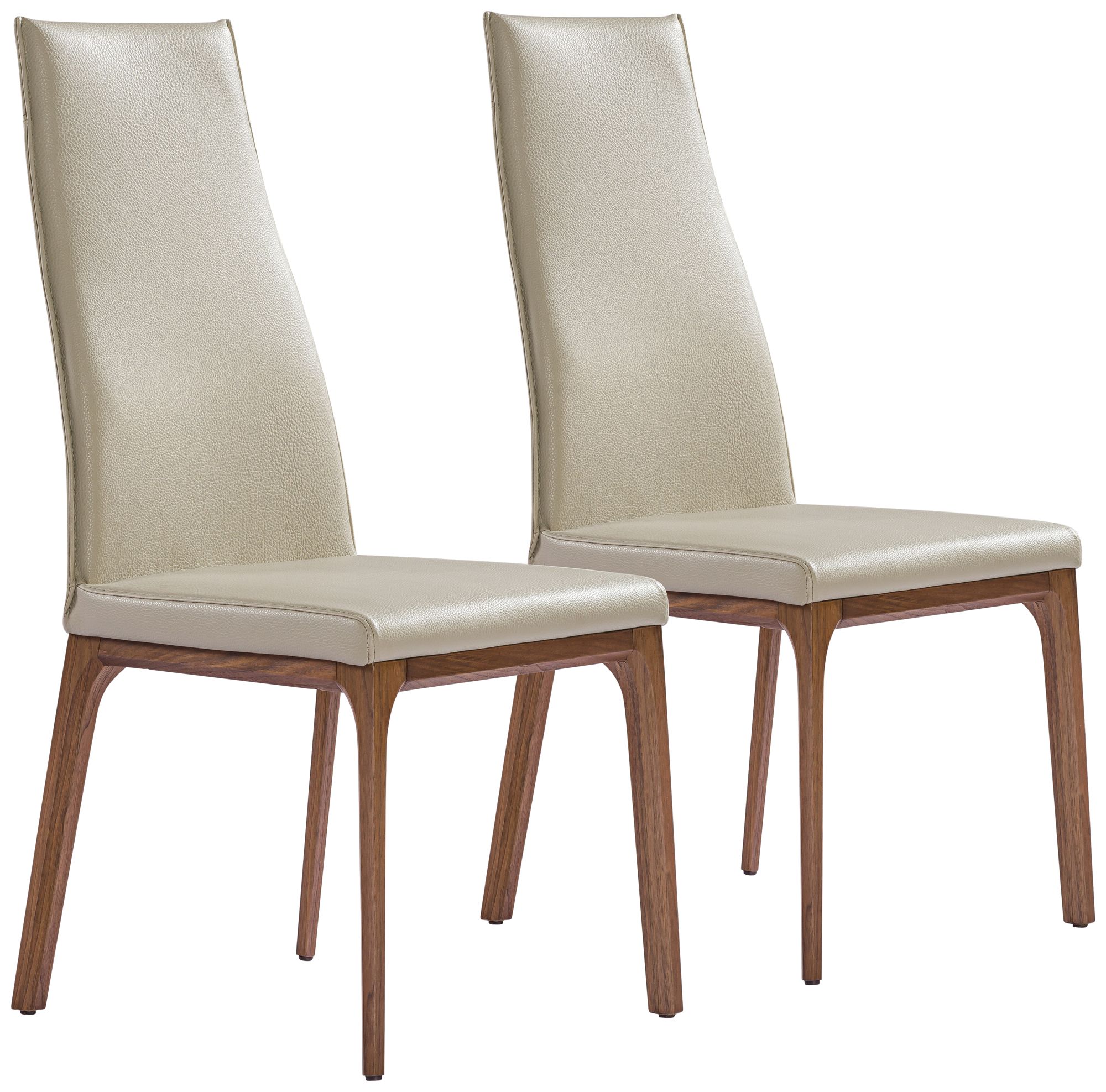 Built with a slim profile, this set of 2 Ricky dining chairs from White line is the ideal fit for a refined decor. The taupe faux leather fabric brings a premium quality to the appearance. The walnut frame offers a natural complement the neutral seat.