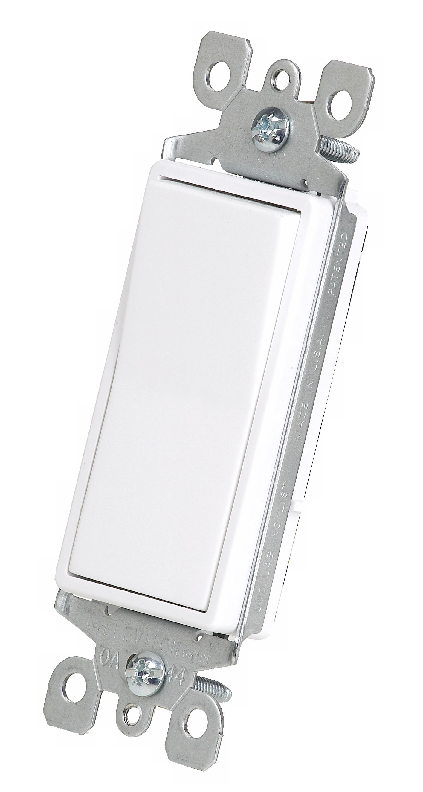 Rocker wall switch in white by Leviton.