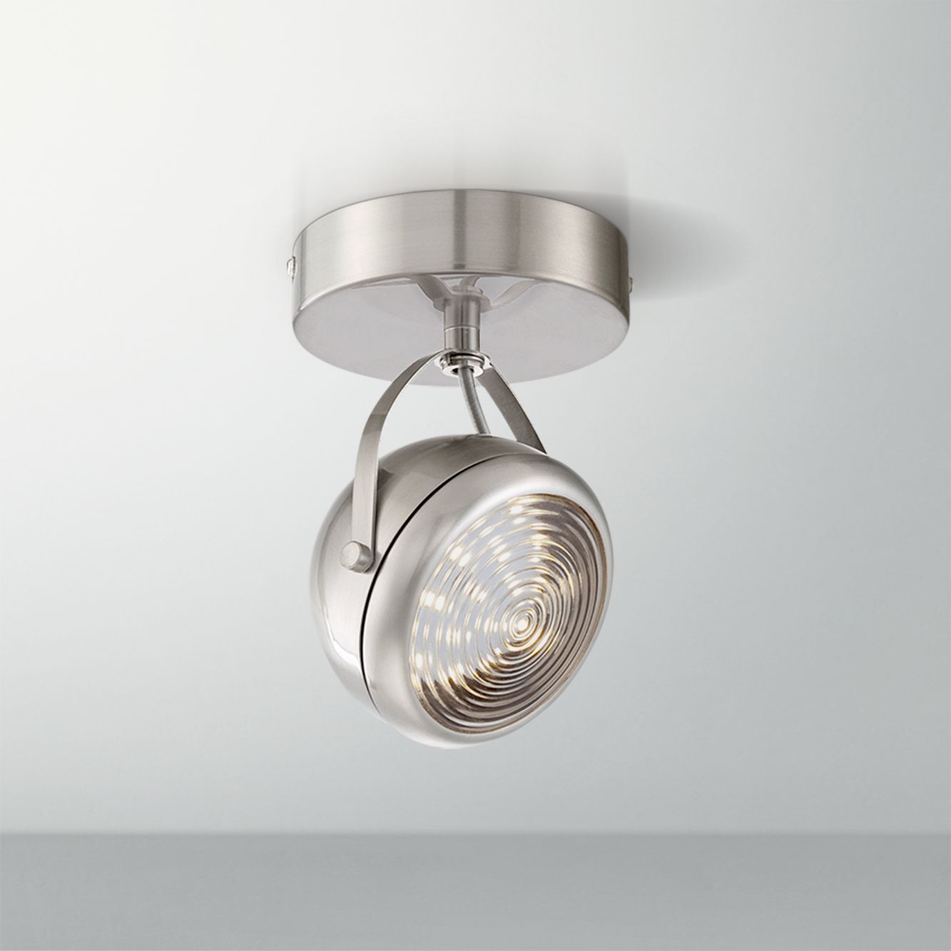 Accent your home with LED lighting power from this one light Pro Track spot light. The design features a satin nickel finish canopy and accents with an LED light that is fully adjustable and can be aimed as needed. Round faceplate accent. From ProTrack®.