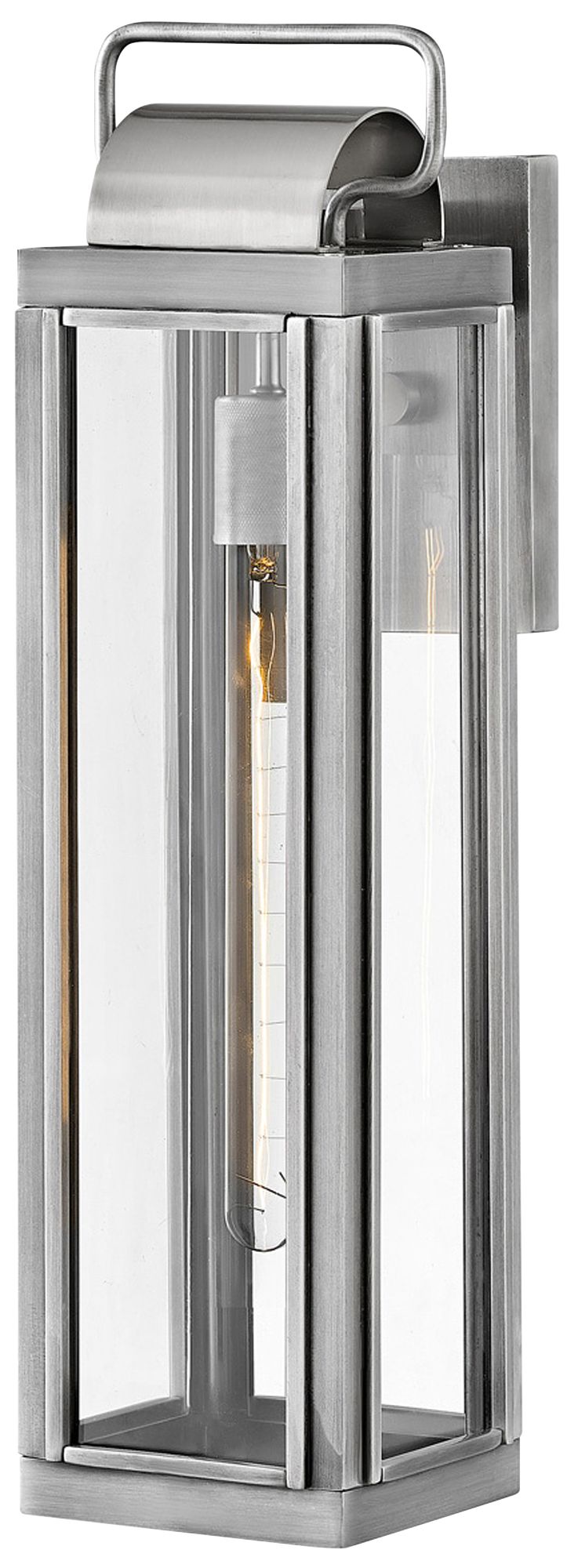 The inclusion of charming nautical influence romanticizes this contemporary metal outdoor wall light, delivering a distinctive theme. From the Sag Harbor collection by Hinkley, its linear and boxy lantern motif offers a classic look made of antique brushed aluminum finish aluminum. Clear glass panels create a full view of its interior light mount. This exterior fixture updates any structure with the charming look of maritime flavor.