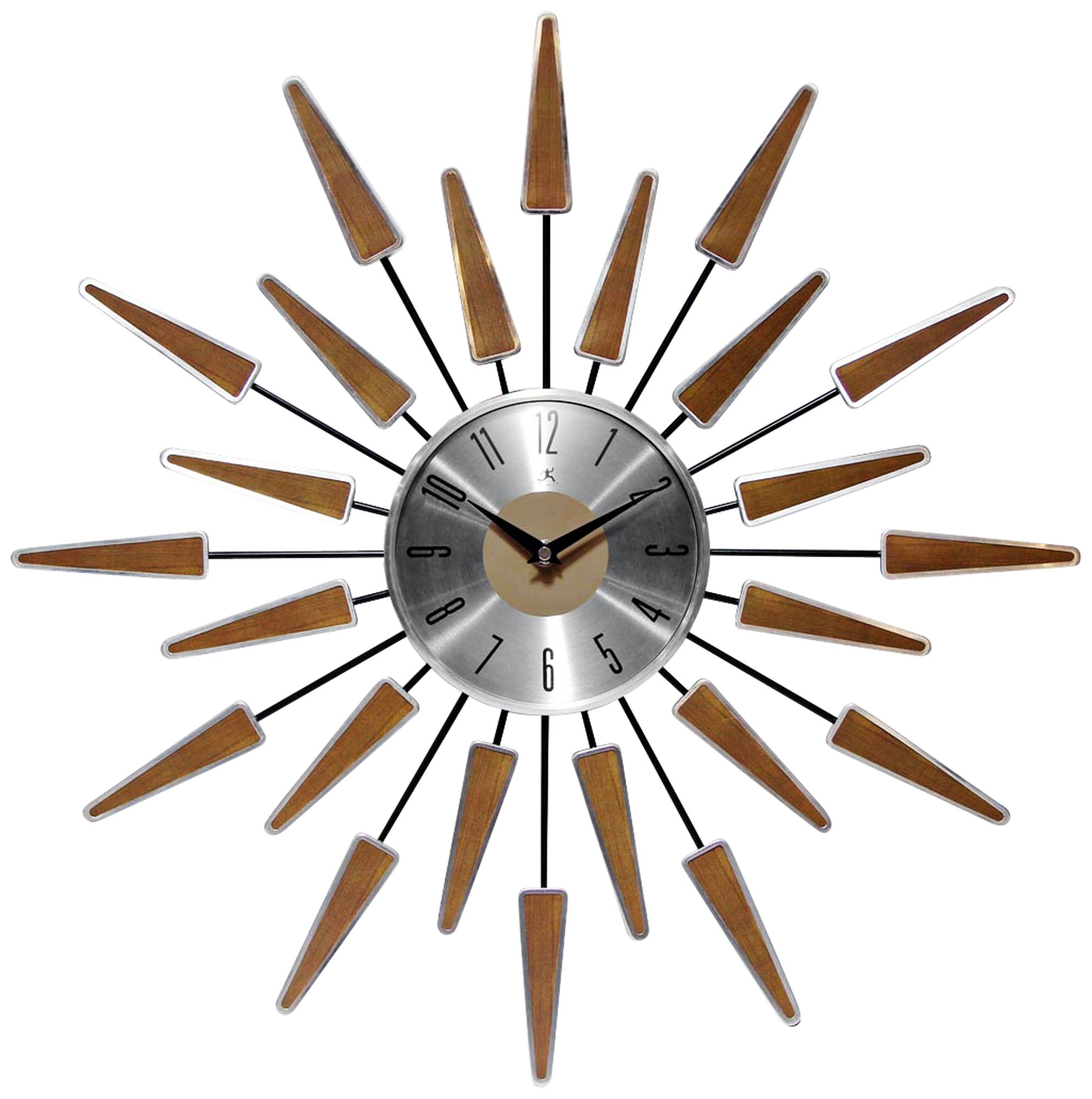 Elevate the modern appeal of your living space and personalize your decor with this mid-century wall clock. Its distinctive radial design establishes eye-catching style while its quartz movement provides accurate timekeeping.