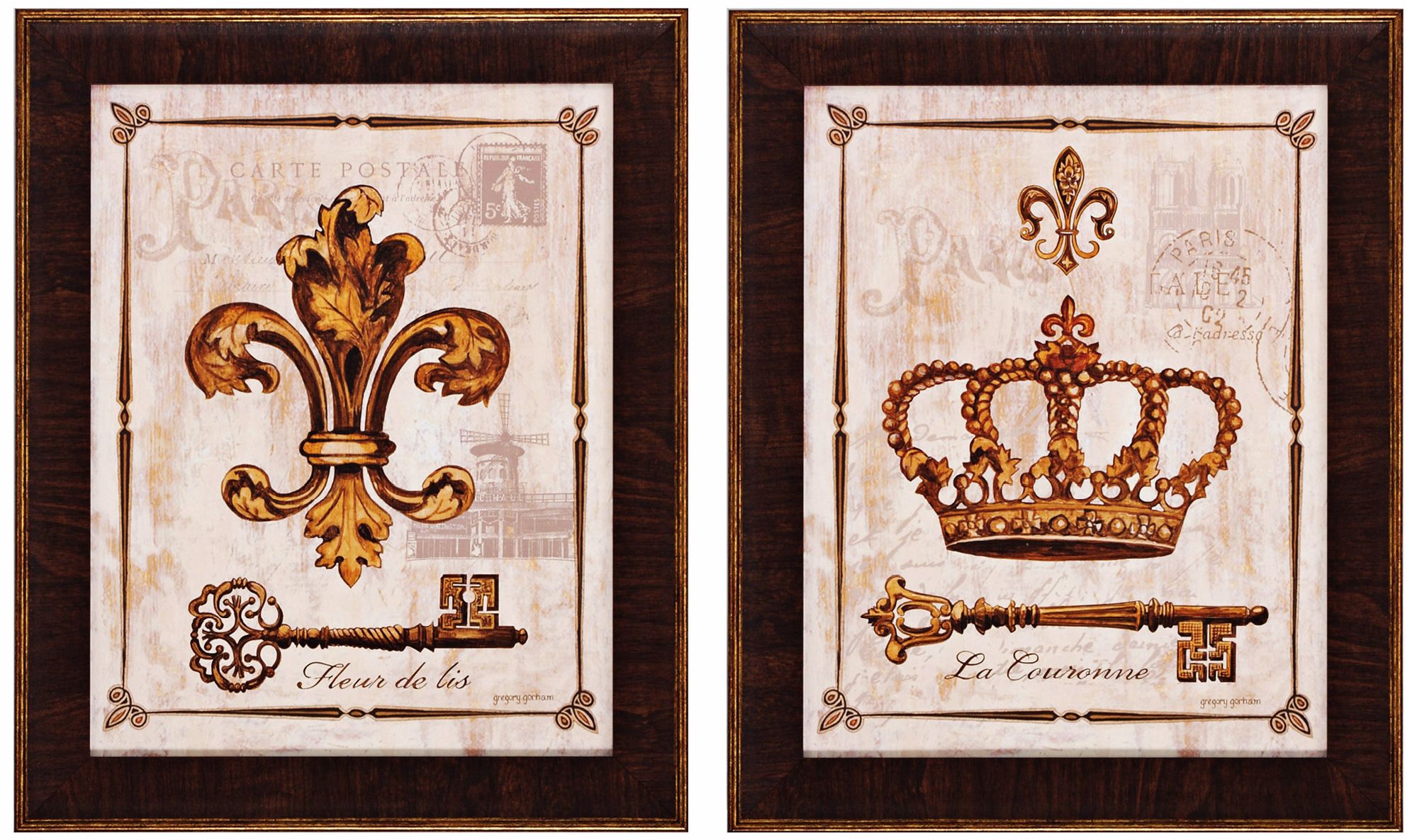 Set of 2 Couronne/Fleur 17" High French Wall Art