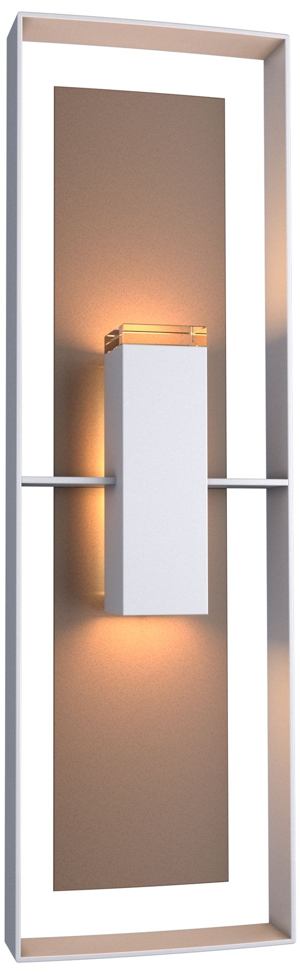 The Shadow Box Tall Outdoor Sconce is inspired by contemporary architecture according to Designer David Martin. Its sensual minimalism is accentuated by the dramatic lighting created by its aluminum frame. All Hubbardton Forge products are hand-crafted one at a time in Vermont, built to last and backed by a Lifetime Limited Warranty.