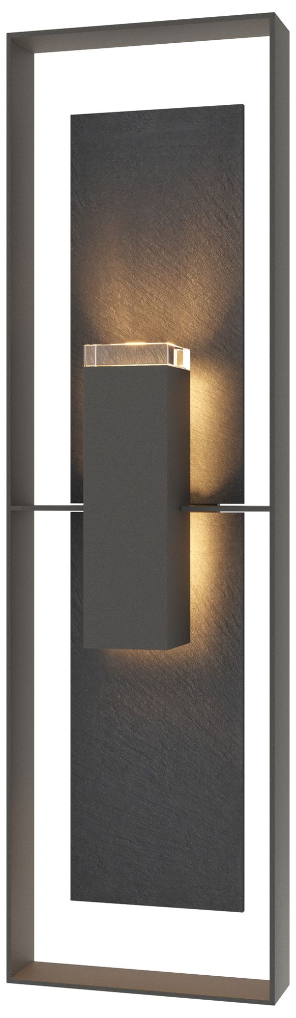 Talk about a great first impression. This large scale outdoor wall-mounted fixture has an aluminum frame and is offered with any of our robust Coastal Outdoor Finishes, all AAMA 2604-rated or the natural Vermont black slate.