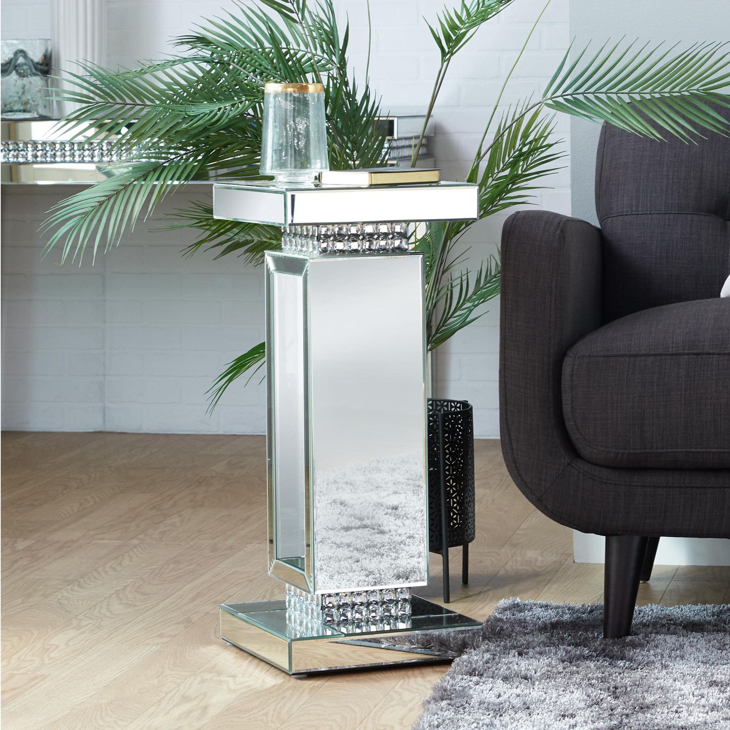 Silver Glass Glam Pedestal Table, 12" x 12" x 28"
