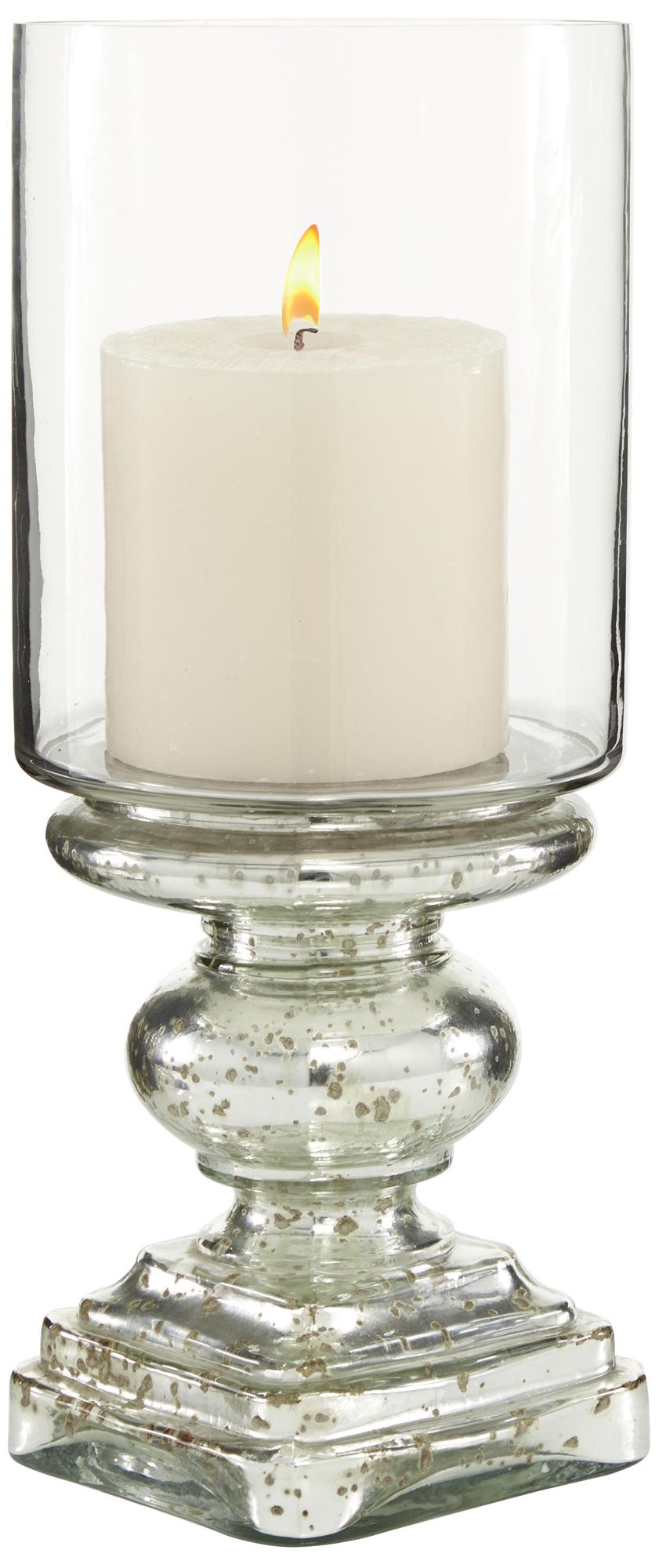 1_Silver Glass Traditional Hurricane Lamp, 6" x 6" x 16"
