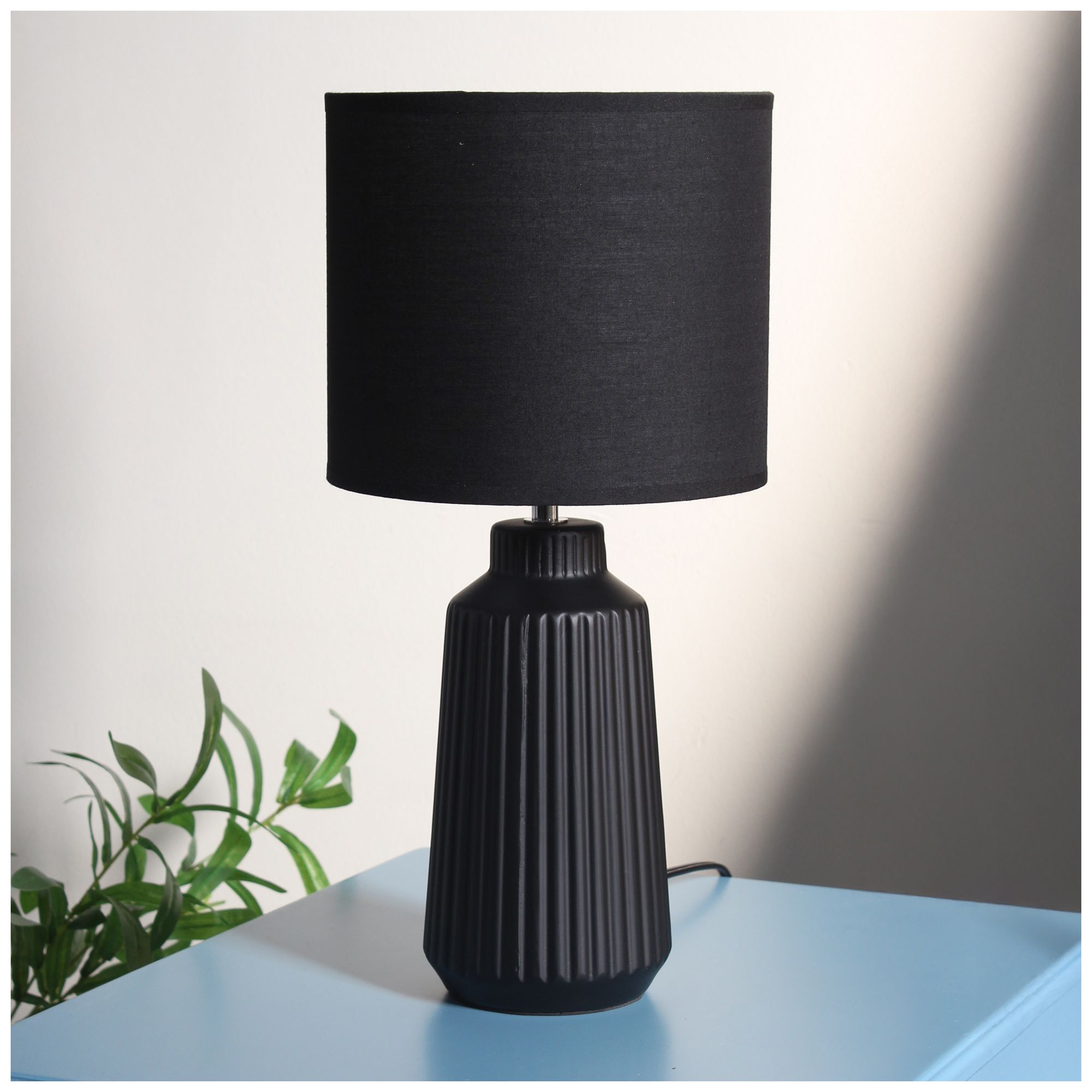 Simple Designs 15.94" Glow & Flow Grooved Tb Lamp, Mono Fabric Shade, Black