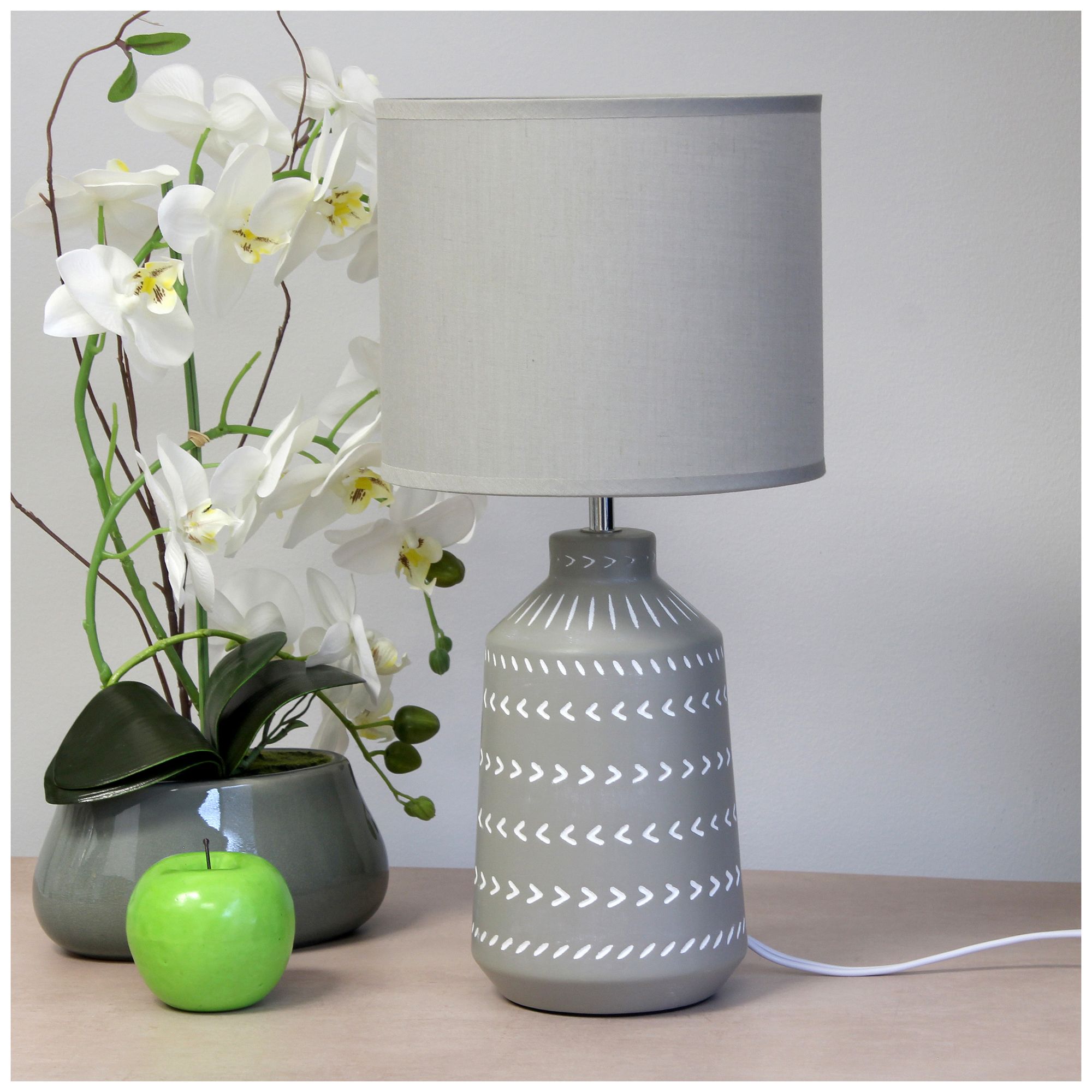 Simple Designs 16.93" Glow & Flow Boho Patterned Ceramic Table Lamp, Gray