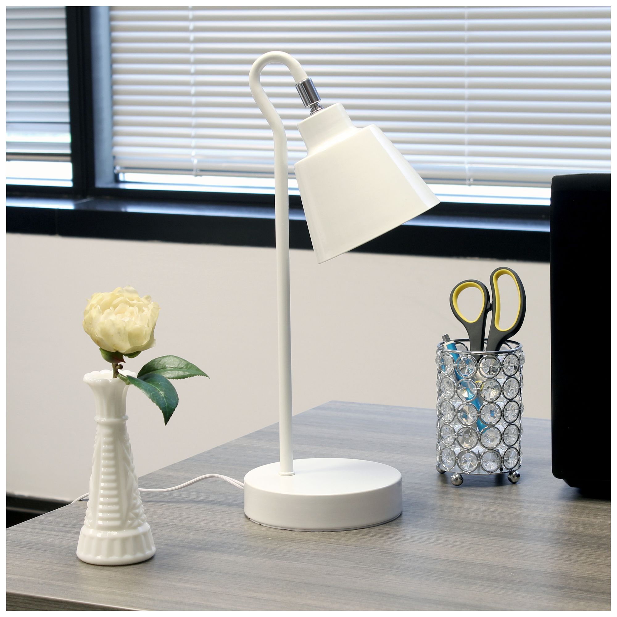 Simple Designs 16" Metal Looped Desk Task Lamp, Adjustable Shade, White