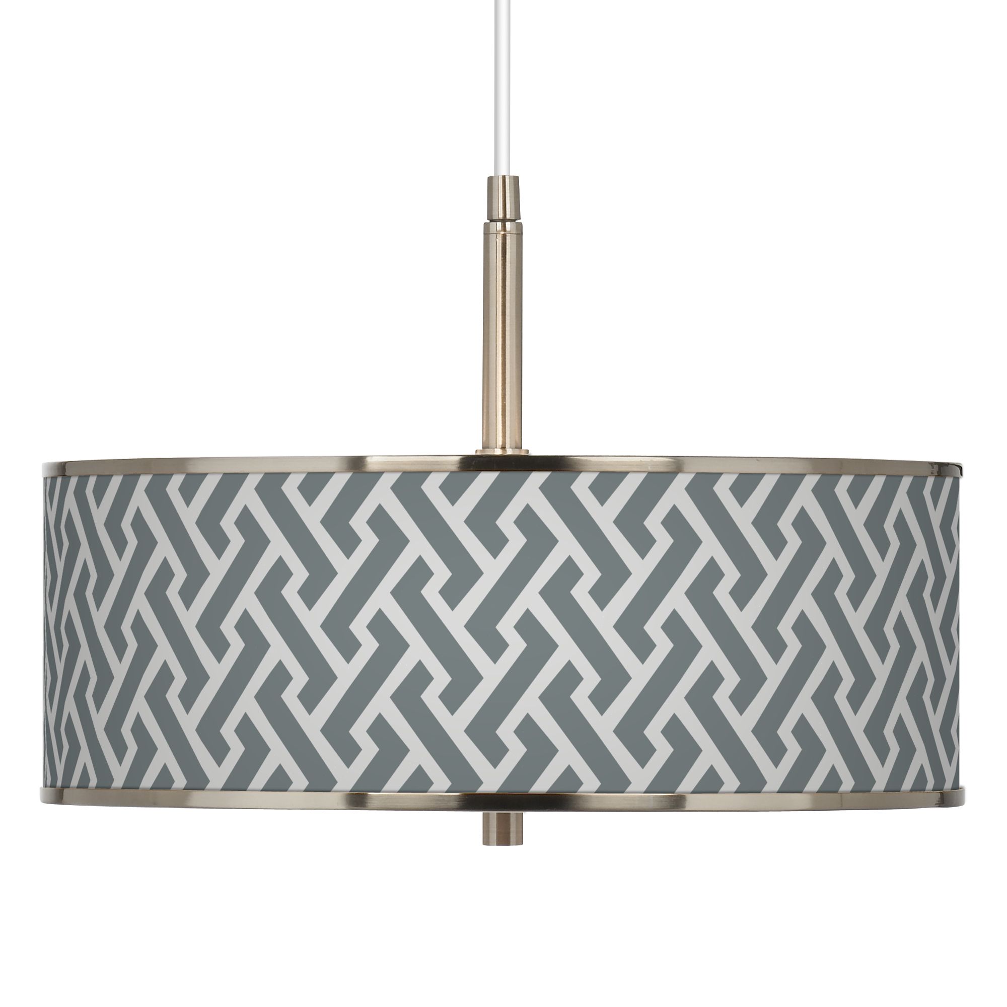 - Brushed nickel finish. Custom-printed translucent shade with exclusive Smoke Brick Weave giclee pattern.