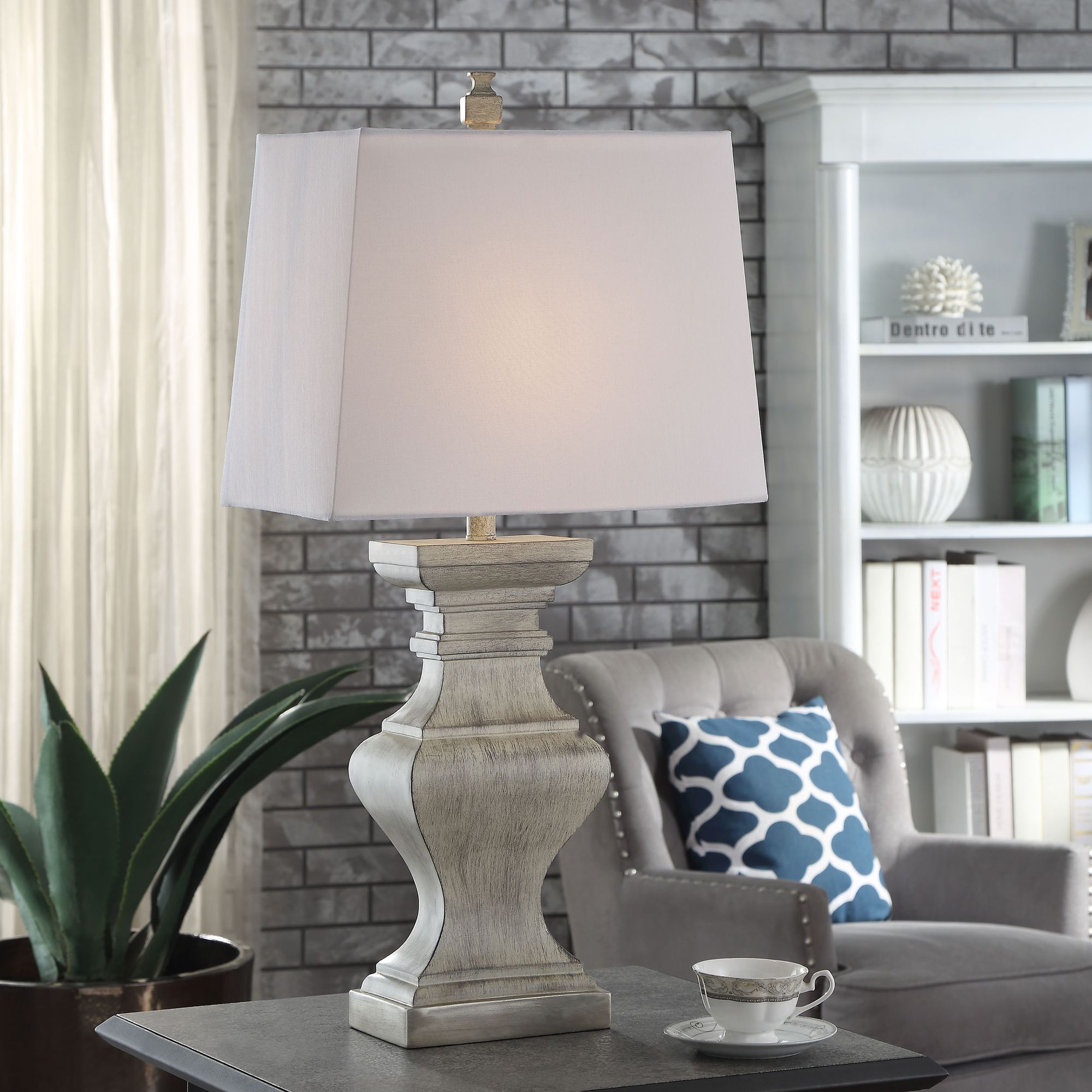 A versatile table lamp with a neutral color scheme, this fixture is a stylish option for a contemporary living room or office. The white rectangular shade pairs beautifully with the curves of the candlestick-style body. The frame features a distressed ivory finish that matches the color of the finial at the top.