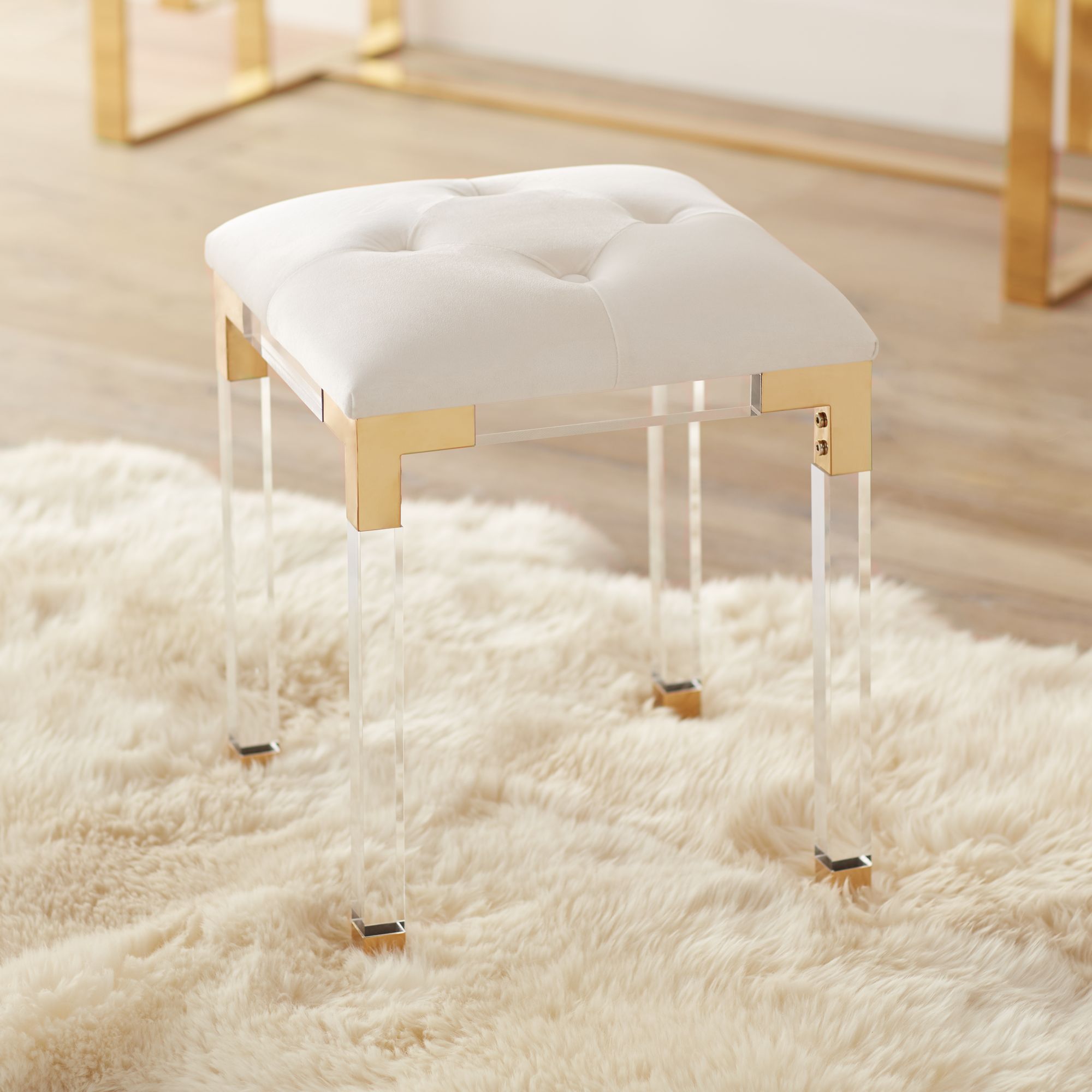 Create more seating without taking up too much space with the addition of this contemporary accent stool. The ivory seat cushion features hand-crafted tufted detailing for an added design and additional comfort. The acrylic legs and gold details create a polished look that is representative of the modern design aesthetic.