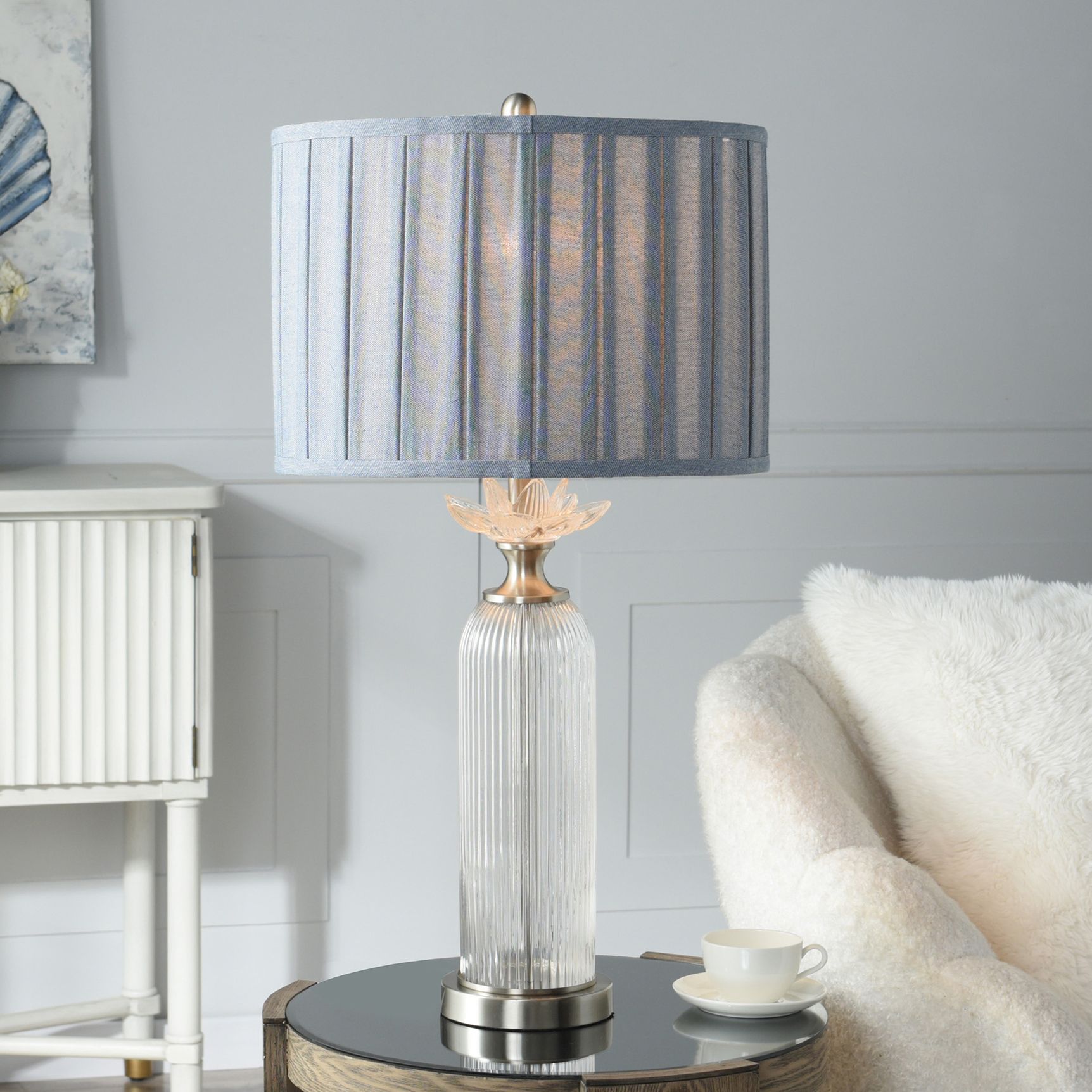 StyleCraft 30.5" High Lotus Silver Table Lamp with Blue Shade
