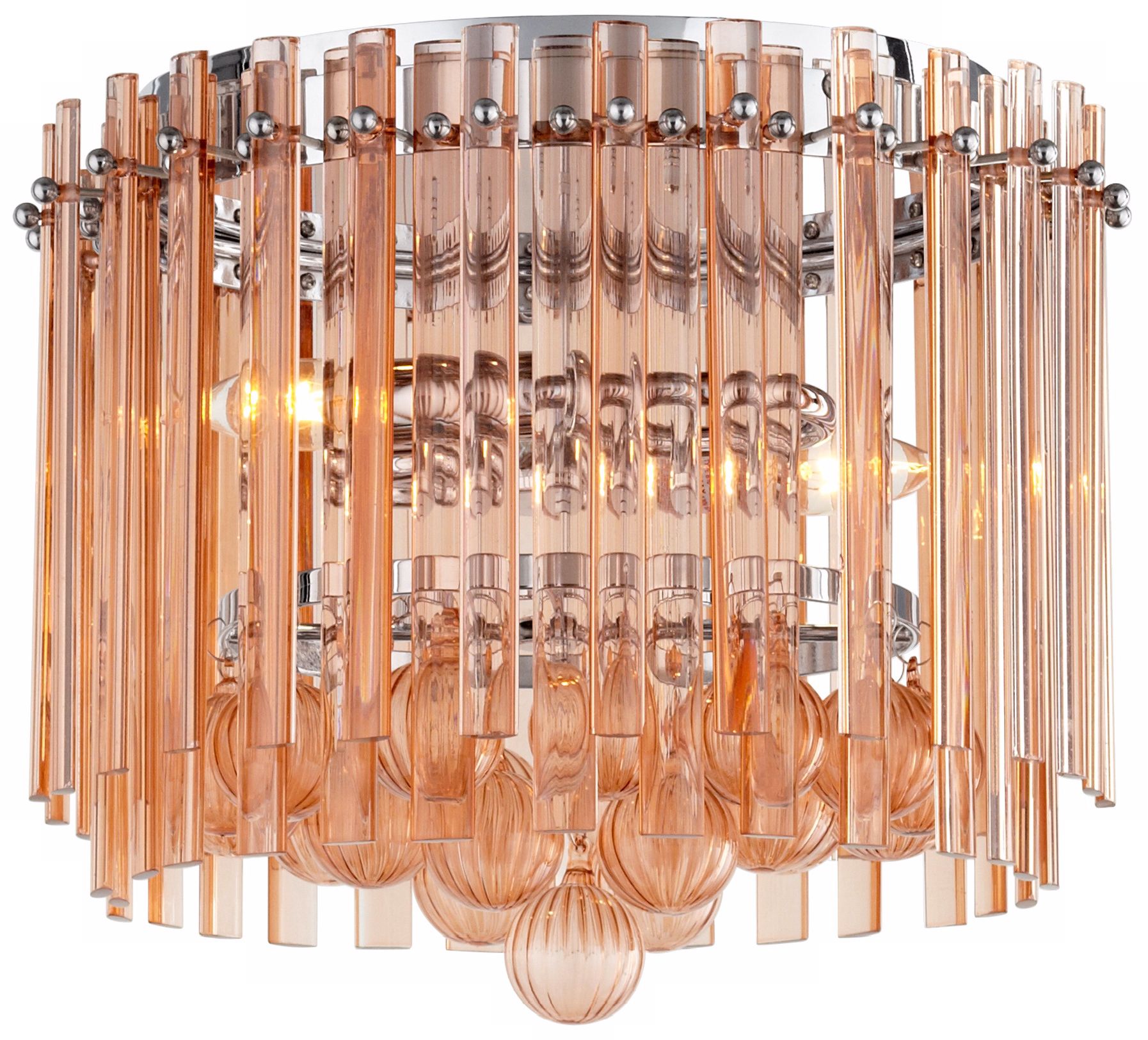 A gorgeous cascade of blush glass makes this ceiling light a perfect fit for a spot in your home you want to make just a little more special. Chandelier construction is anchored by chrome hardware detail. From the Swizzle Collection by Cyan Design.