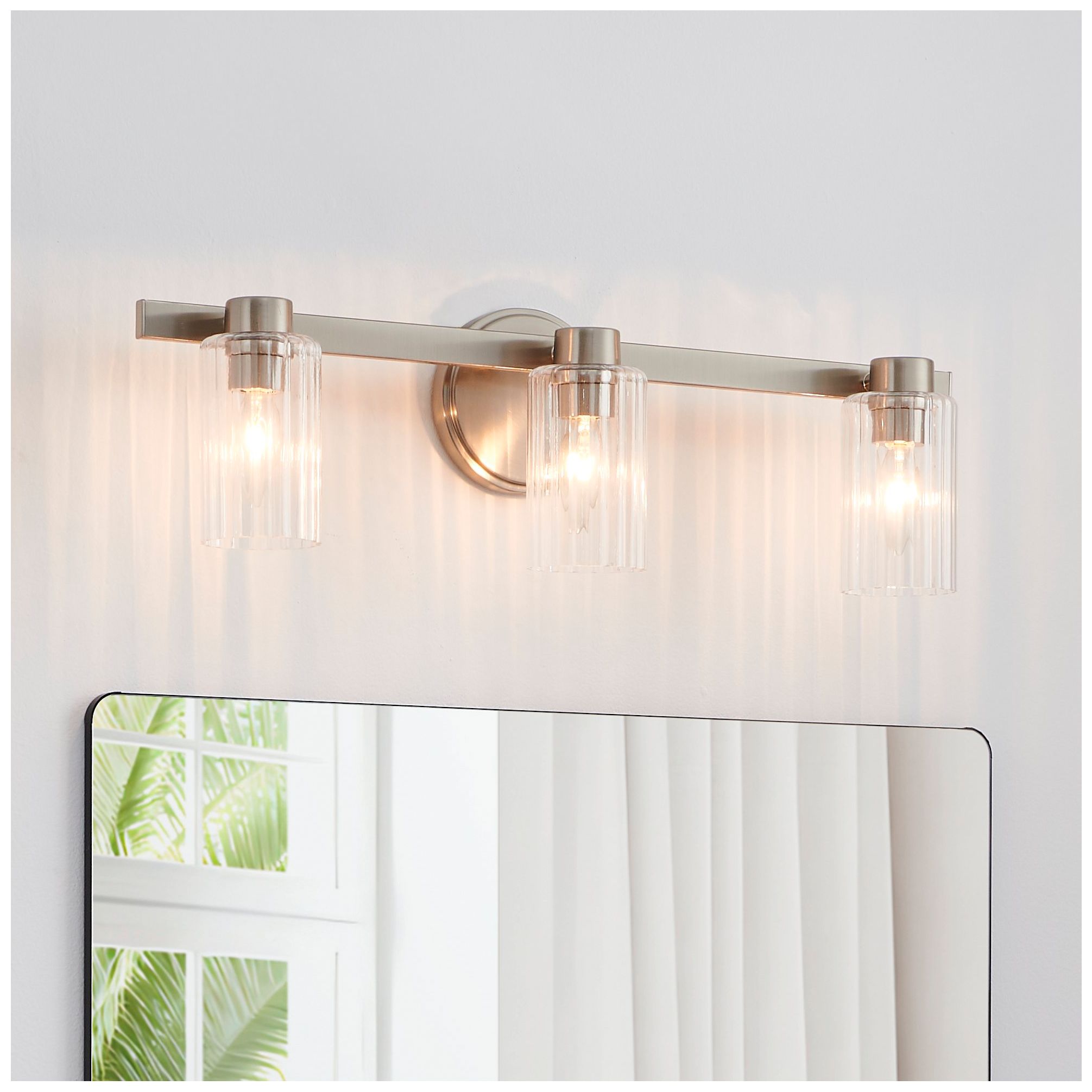 Thesis Bedminster 24" Br. Nickel Vanity Lt w/ Clear Ribbed Glass