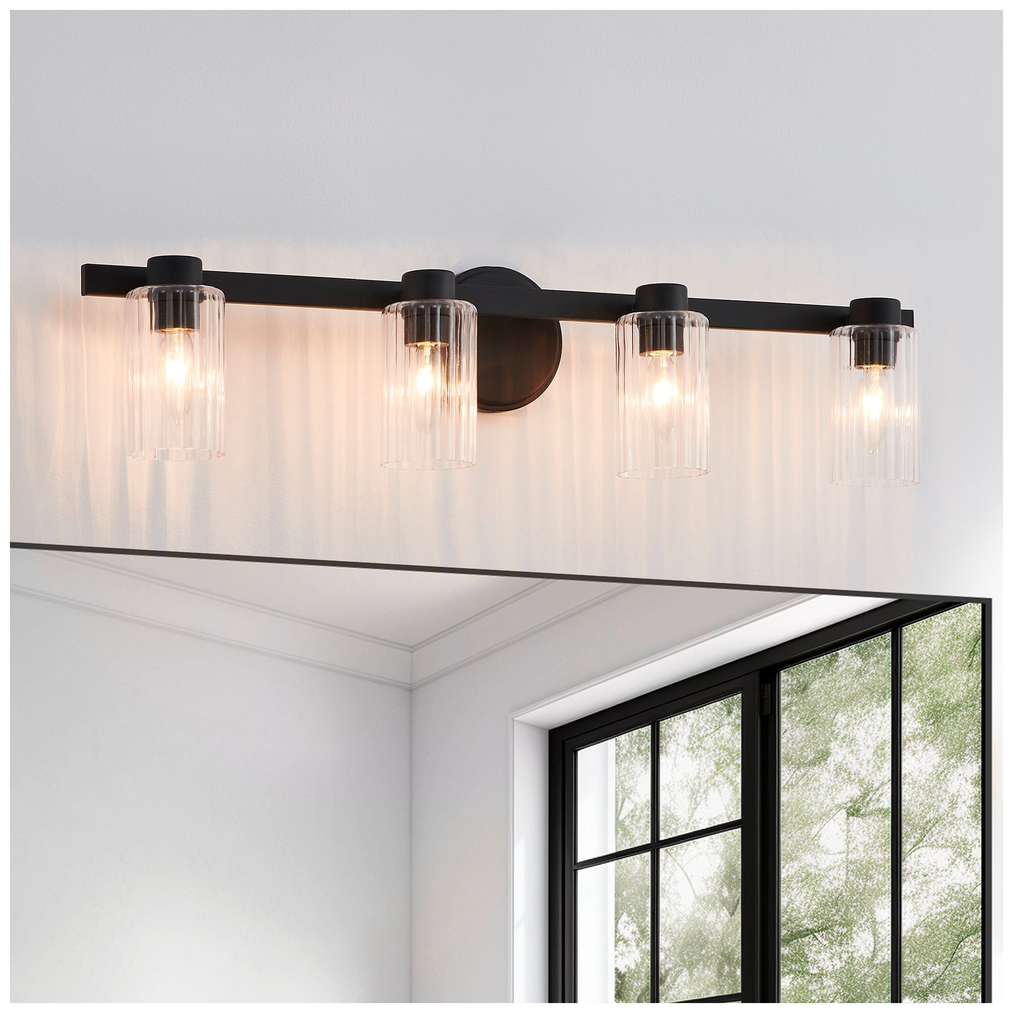 Thesis Bedminster 30" Matte Black Vanity Light w/ Clear Ribbed Glass Shades