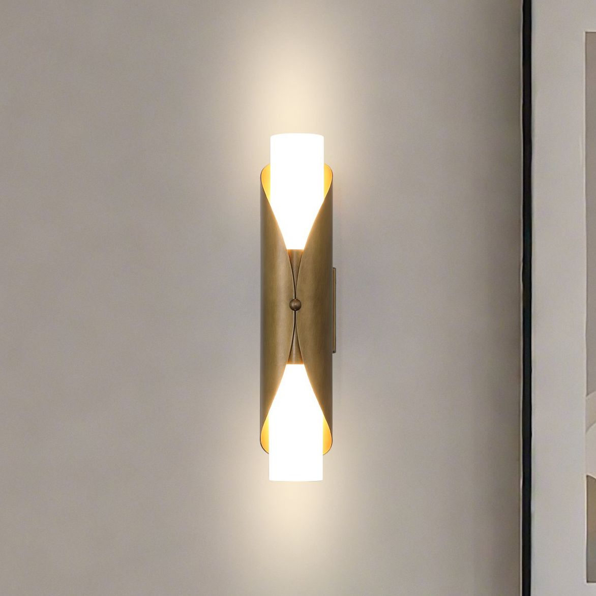 Thesis Crescendo 18" 2 Light Natural Brass Wall Sconce with Alabaster Glass