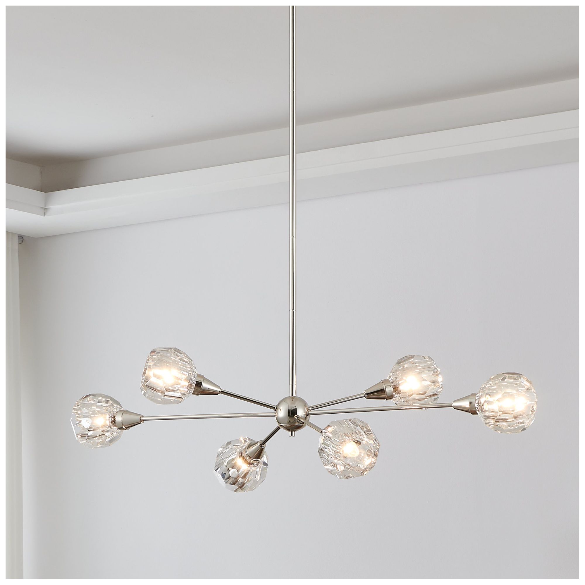 Thesis Helena 42" 6 Lt Polished Nickel Chandelier w/ Clear Acrylic Shades