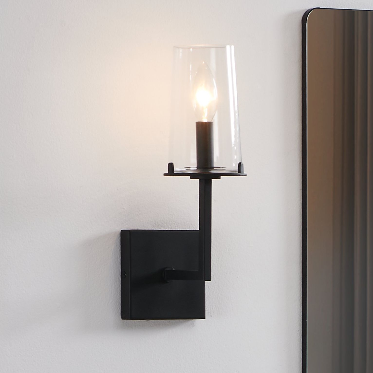 4_Thesis Jared 13-inch Matte Black Vanity Light with Clear Glass Shade more views