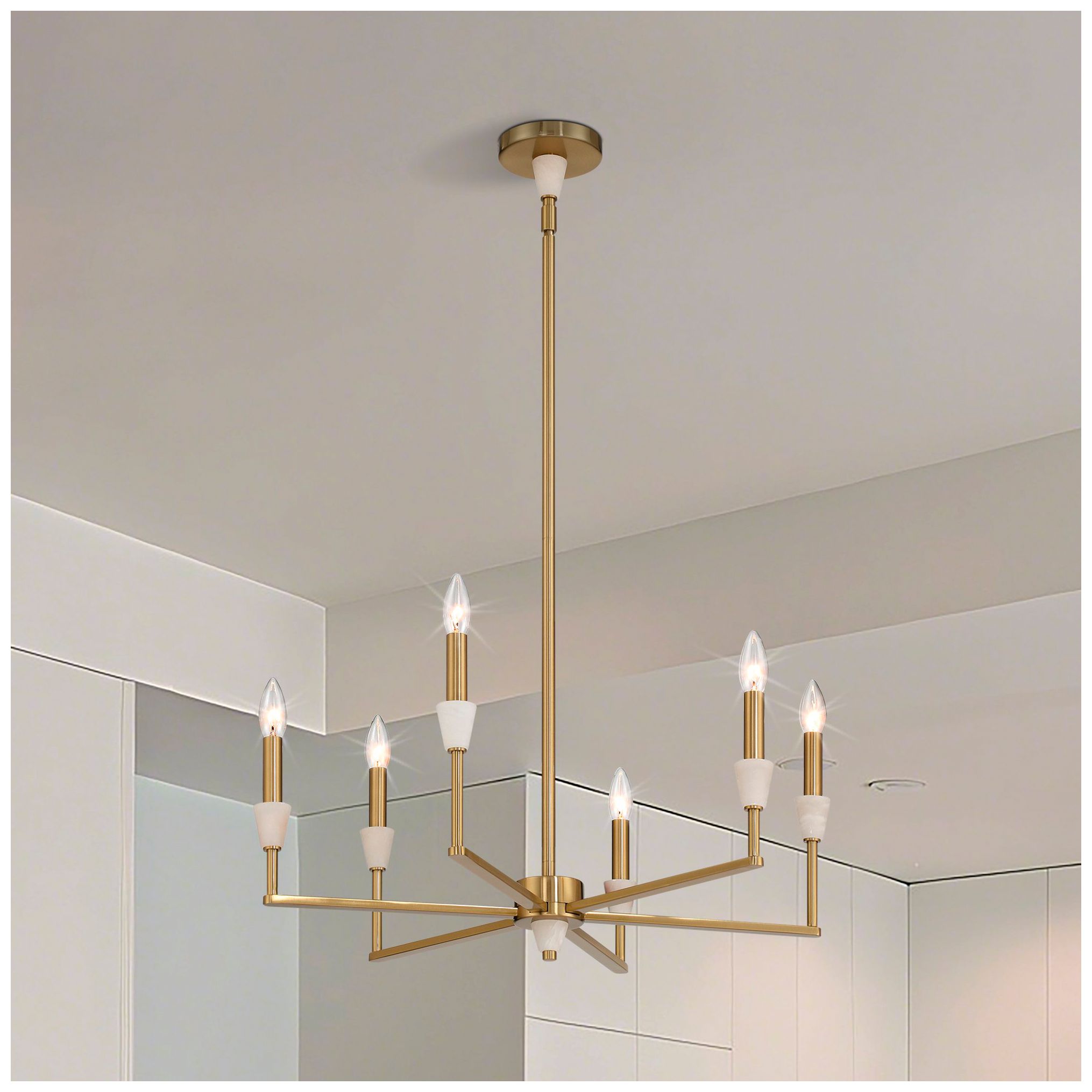 2_Thesis Montclair 26" 6 Light Brushed Gold and Natural Alabaster Chandelier
