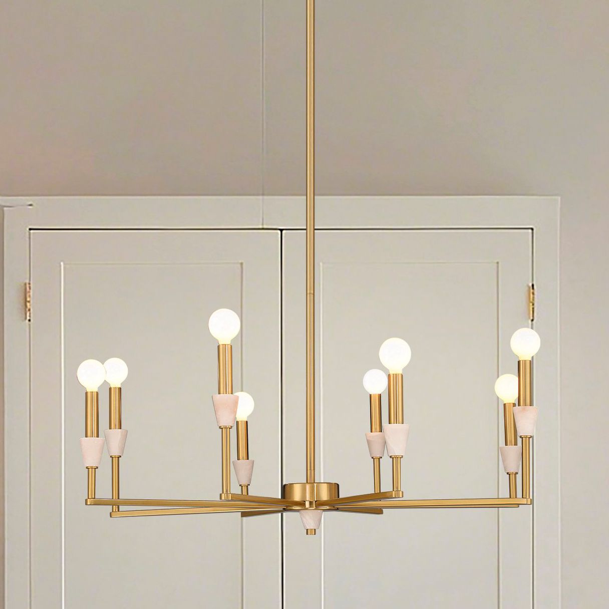 Thesis Montclair 32" 8 Light Brushed Gold and Natural Alabaster Chandelier