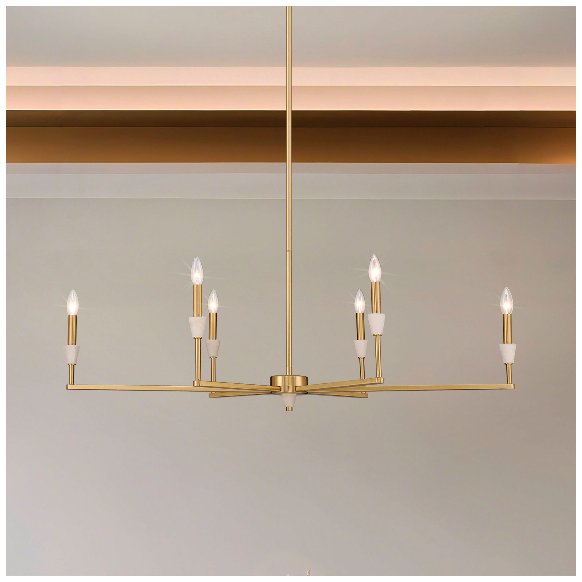 Thesis Montclair 6 Lt Brushed Gold & Natural Alabaster Linear Chandelier