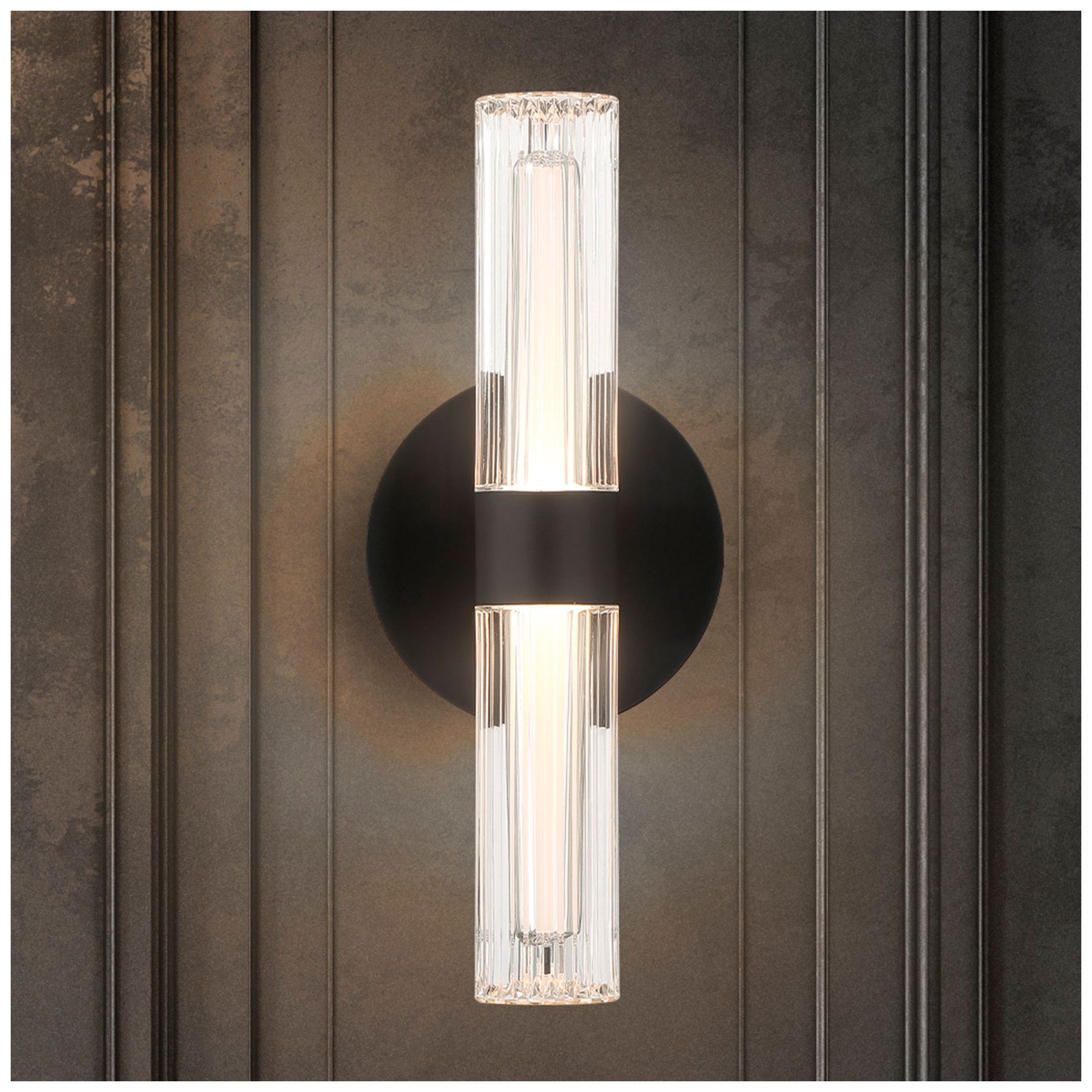 Thesis Ristretto 13" Black LED Sconce, Clear Ribbed White Acrylic Shades