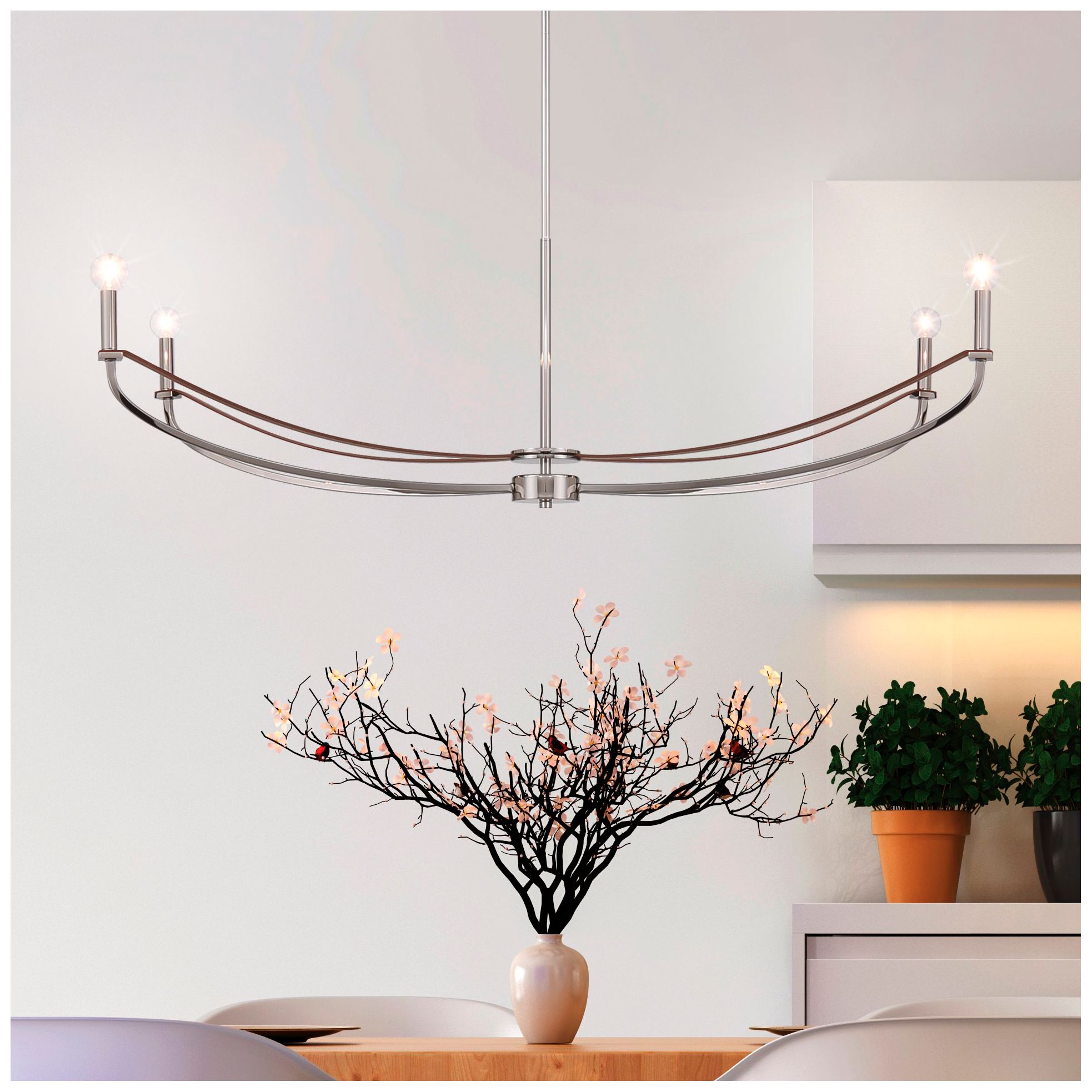 Thesis Sussex 47" 4 Lt Polished Nickel and Dark Brown Chandelier