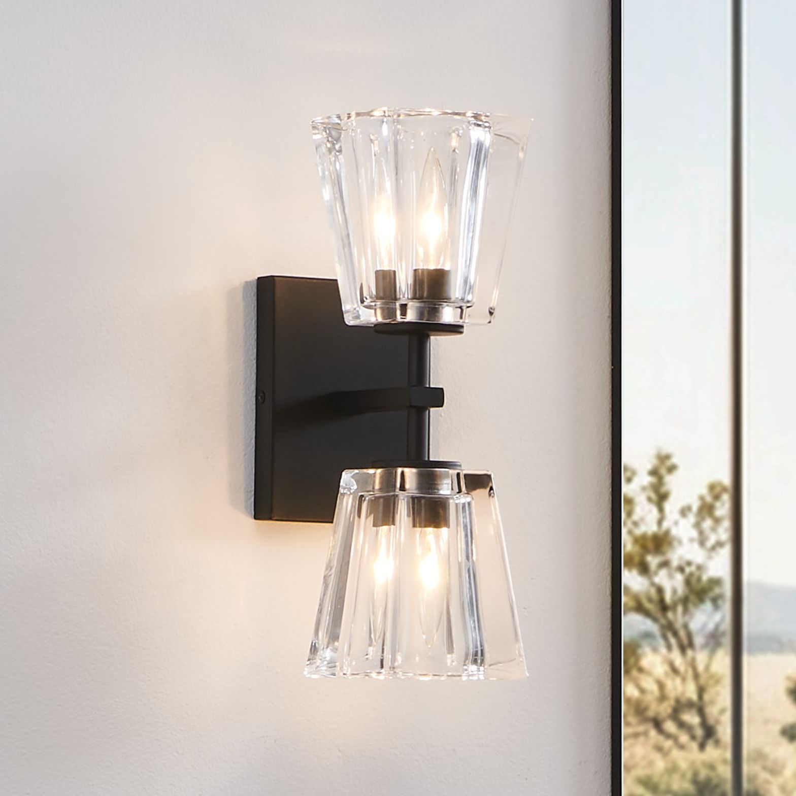 Thesis Valentin 13-inch Matte Black Vanity Light - Clear Pressed Glass