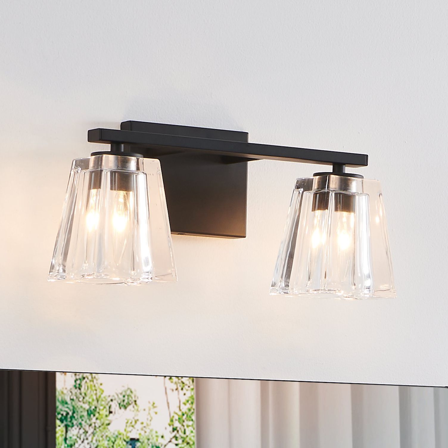 Image 1 Thesis Valentin 15" Matte Black Vanity Light w/ Clear Pressed Glass Shades
