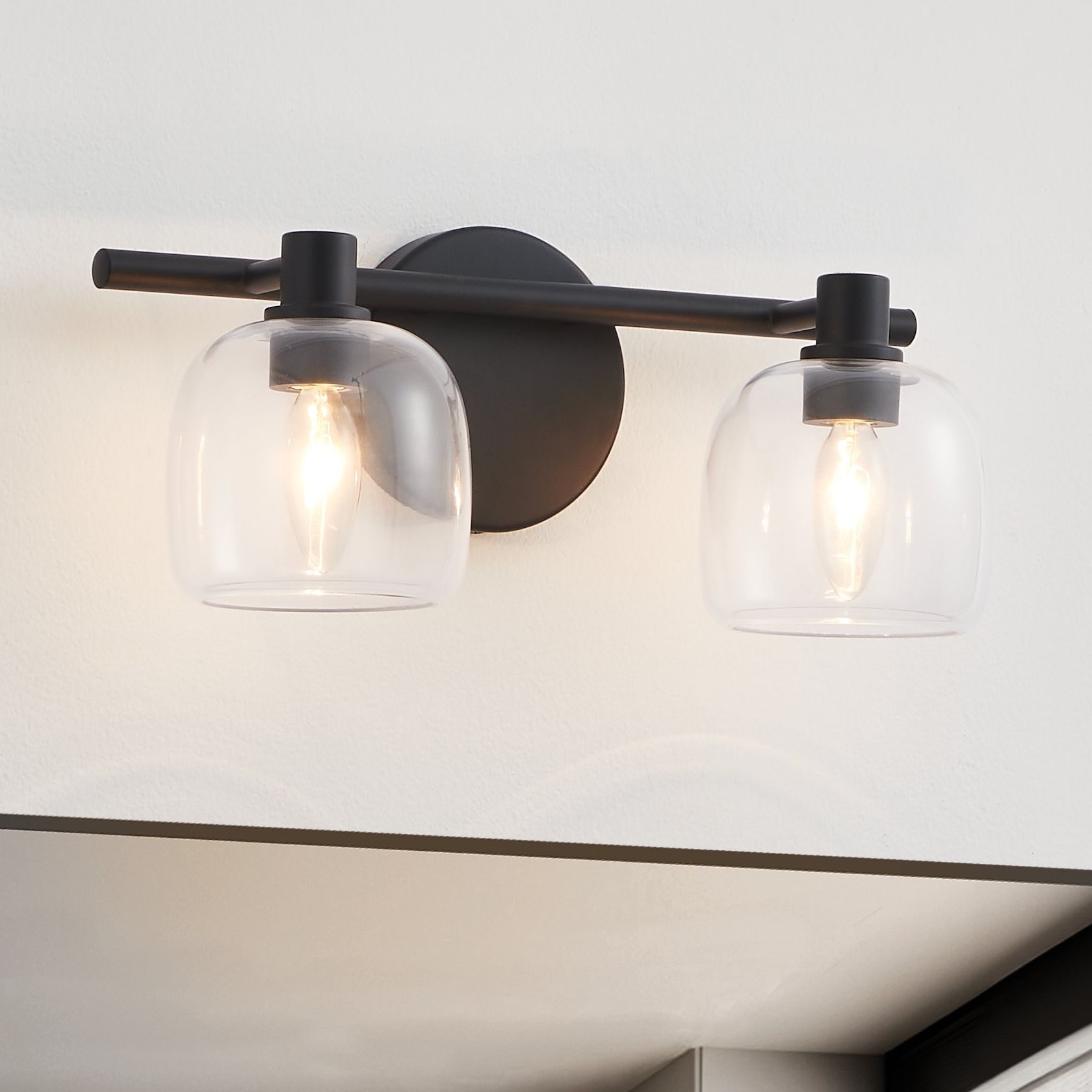 6_Thesis Valentina 15-inch Matte Black Vanity Light with Clear Glass Shades more views