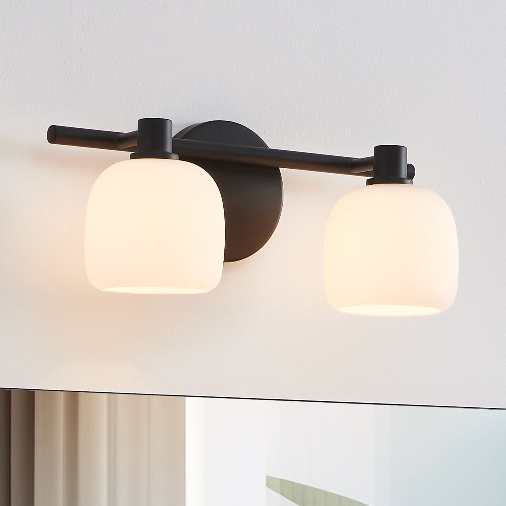 1_Thesis Valentina 15" Matte Black Vanity Light, Etched Opal Glass Shades