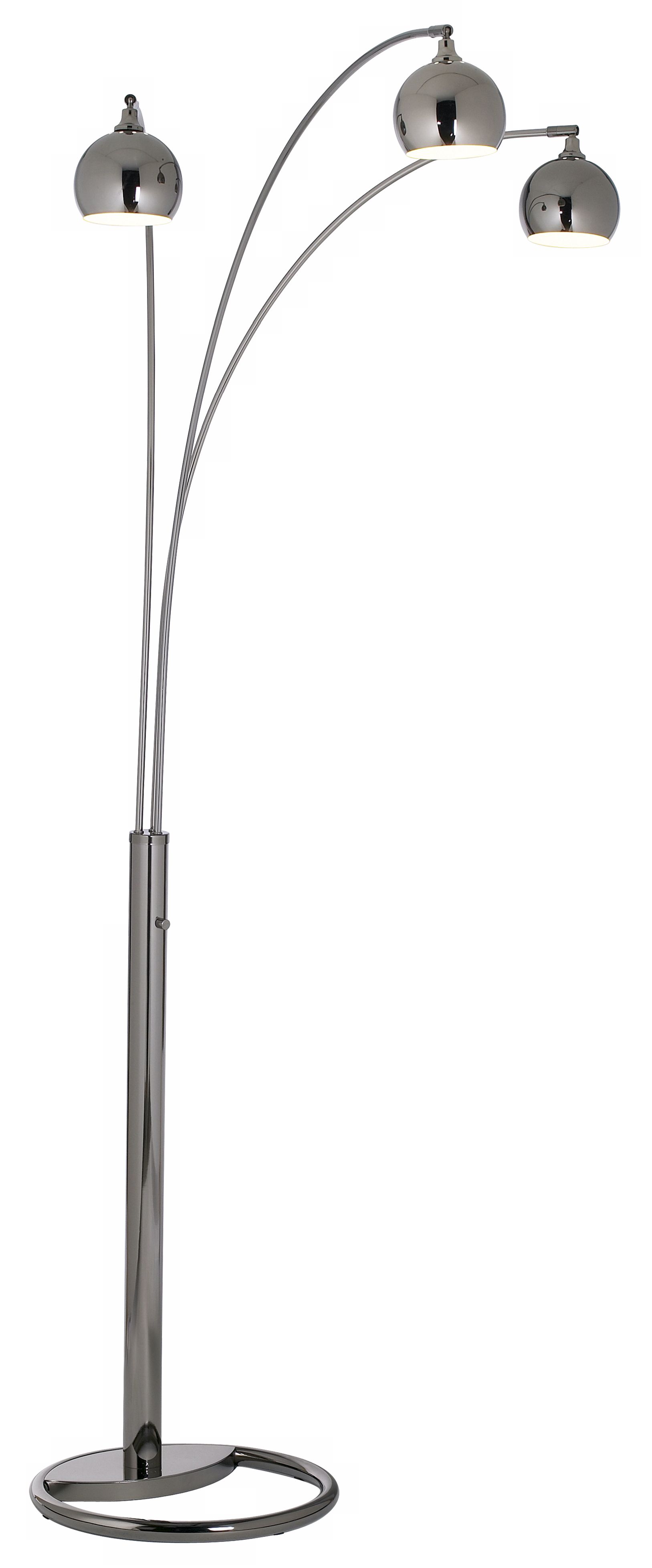A classic retro floor lamp design! Distinctive design scatters three lamp heads into a graceful arc. Black nickel finish. A full-range dimmer on base gives you total lighting control. From the Nova Lighting collection.