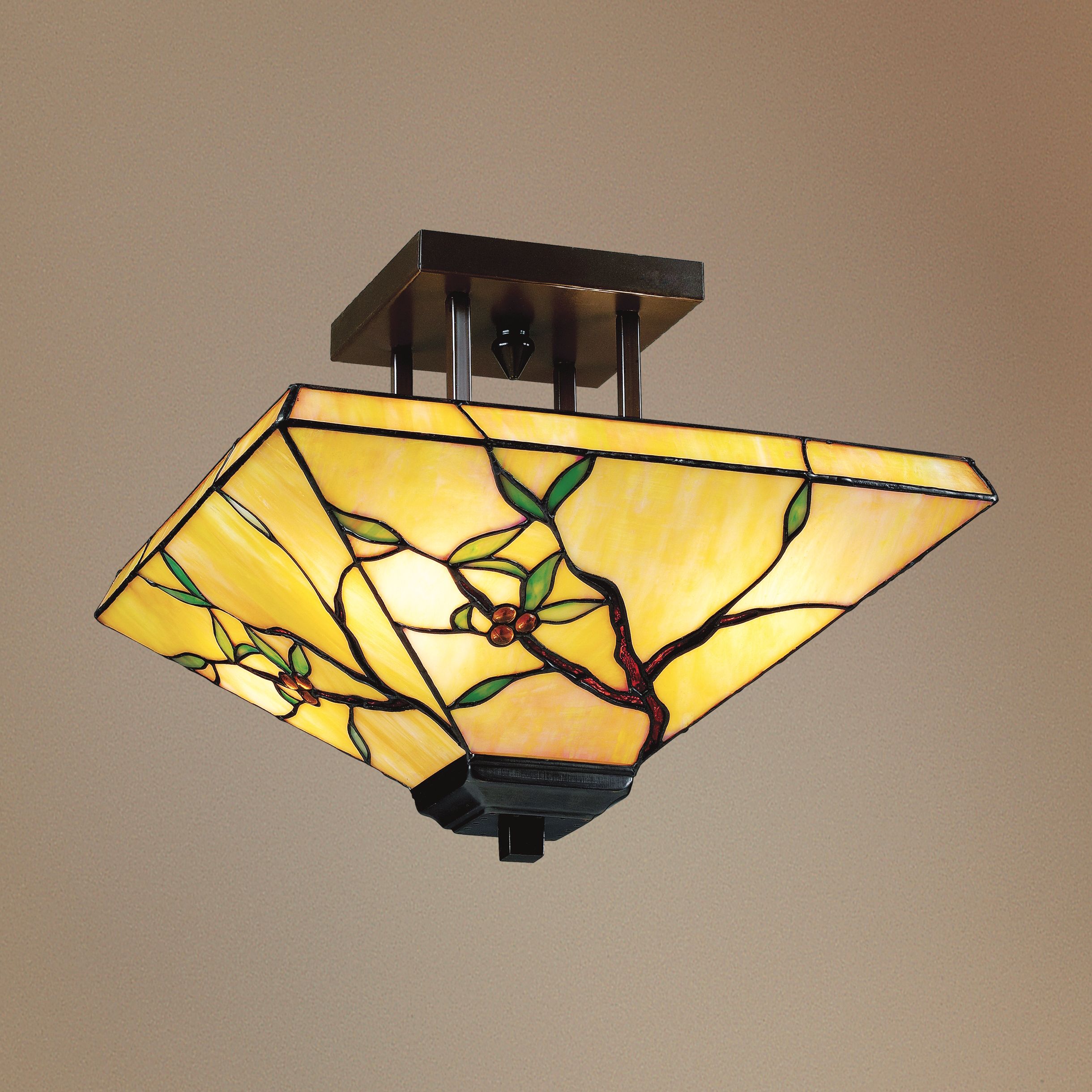 Tiffany Mission Olive Leaf 14" Wide Ceiling Light Fixture