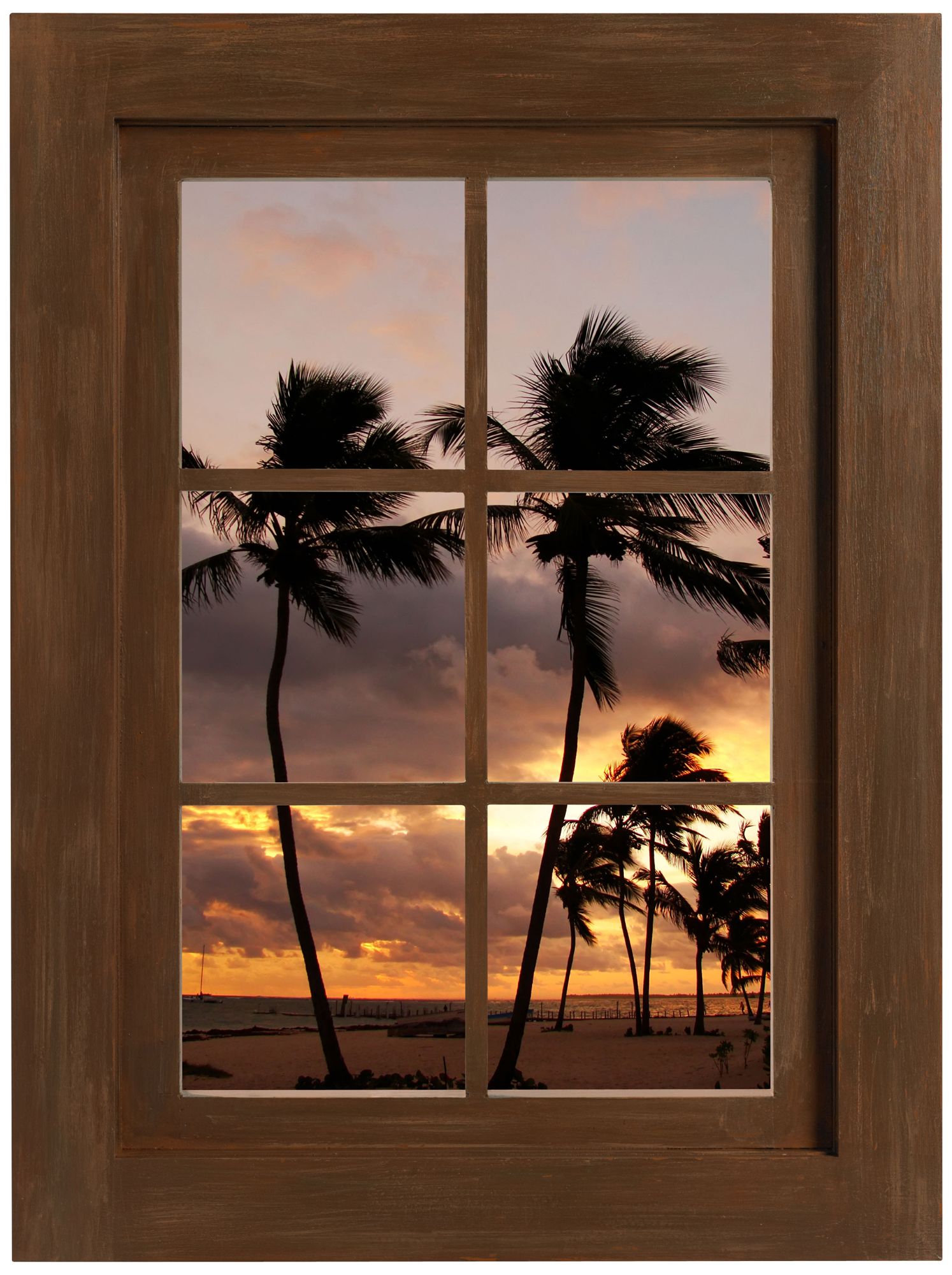 Add color and style to your favorite room with this designer wall art decal. The design features a window wall decal design capturing a multi-colored sunset image based on original graphic artwork. The decal has been printed on a thin, woven material using print machines commonly used for fine art reproductions. To install, carefully peel the decal from the backing from the top, and position on the wall where desired. Then slowly peel down, using the included squeegee applicator to remove any air bubbles. The decals are made with a sticky backing allowing for easy installation and removal. Use several of these together, or combine with one of our other wall decal designs for a custom look.