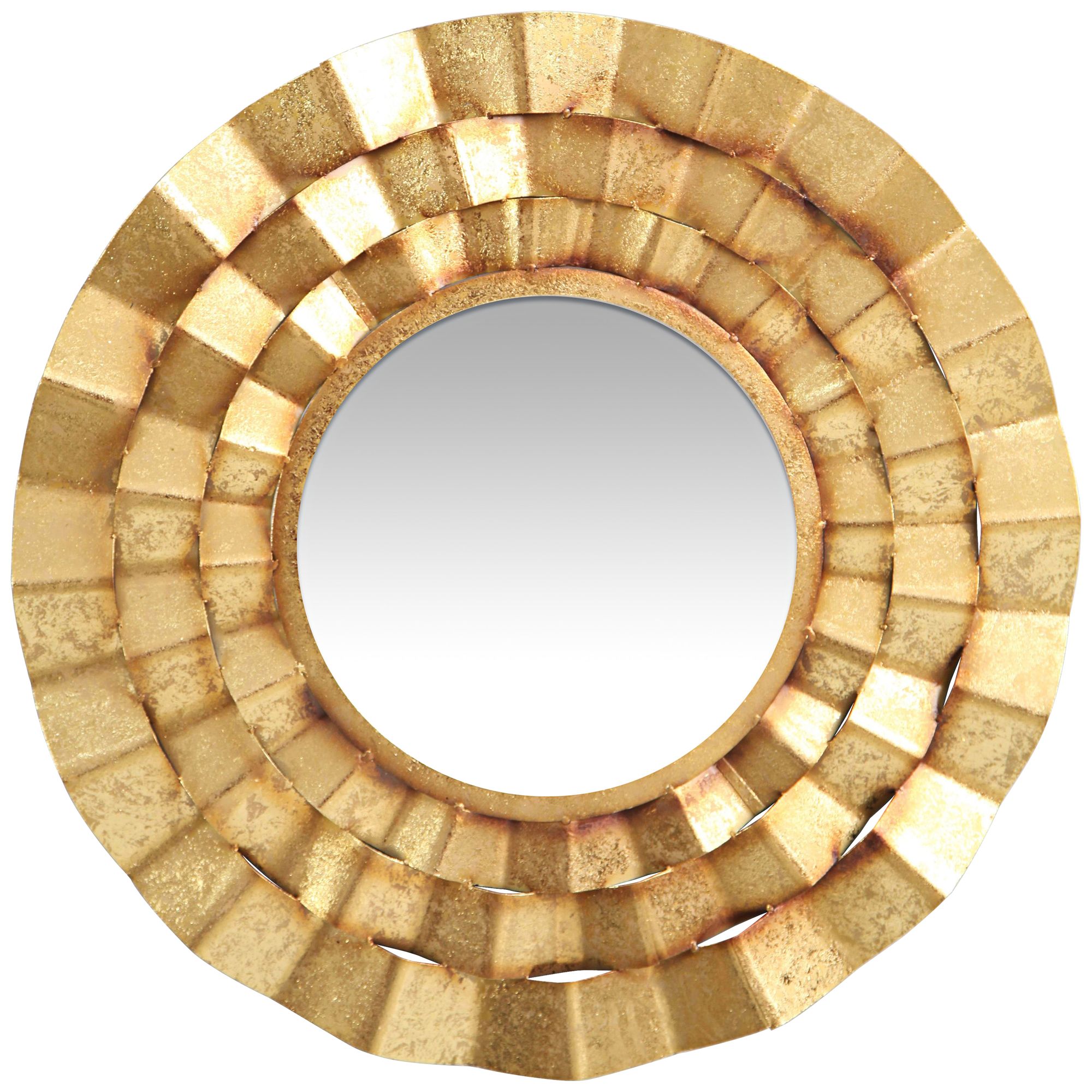 Add the finishing touch to any room in your home with this metal wall mirror. A bright gold finish creates an elegant and opulent look. A hand-welded design in the frame creates stunning dimension to complete the style.