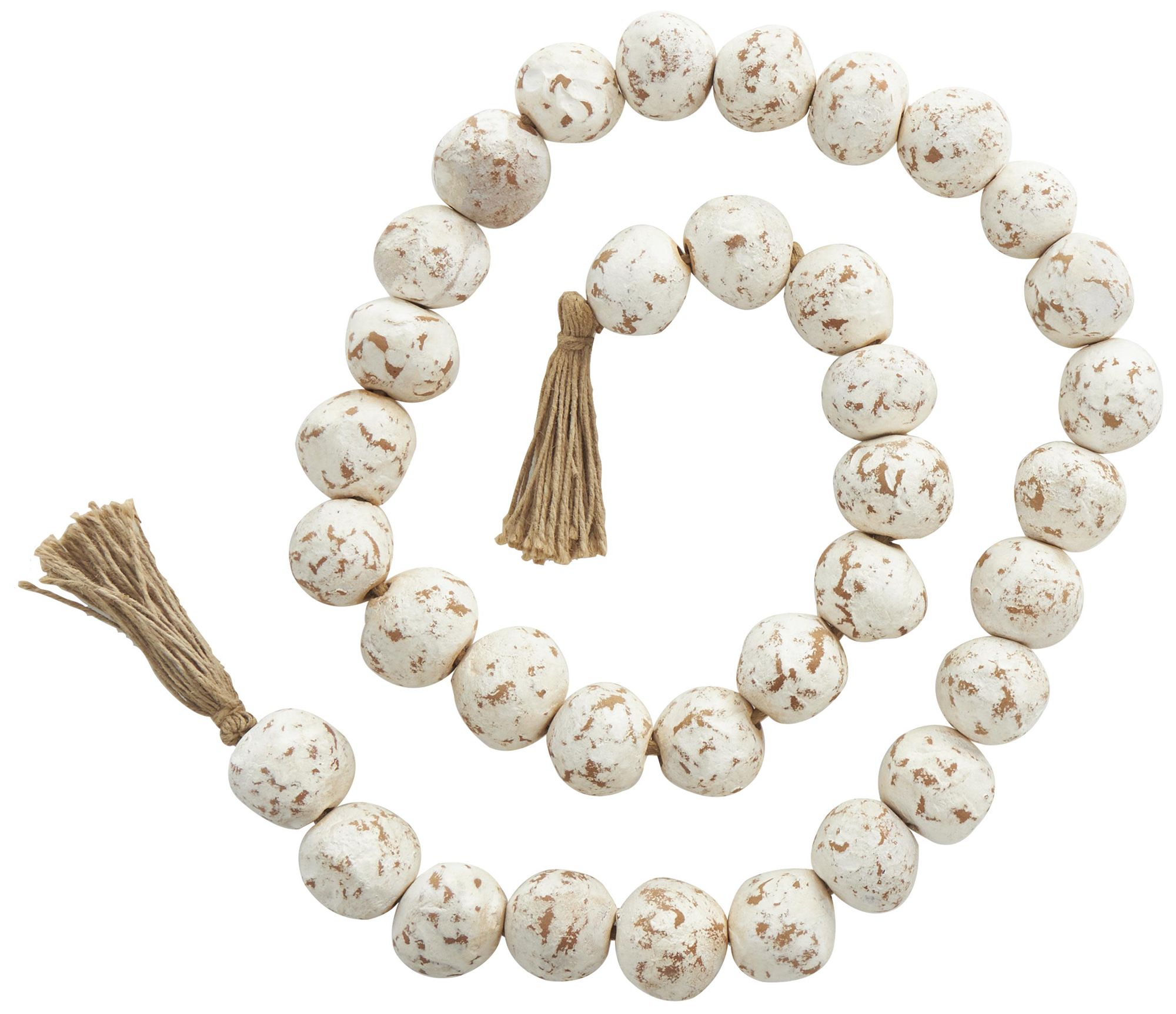 1_White Ceramic Bohemian Garland with Tassel, 62" x 2" x 2"