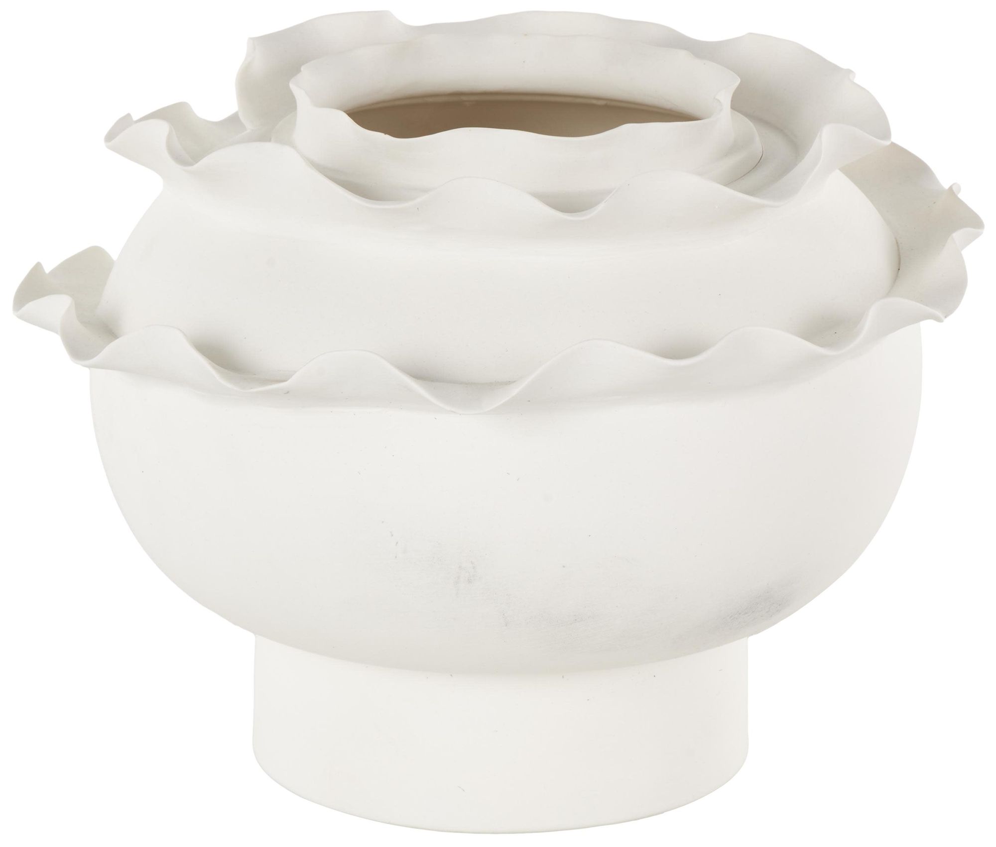 White Ceramic Contemporary Vase, 12" x 12" x 9"