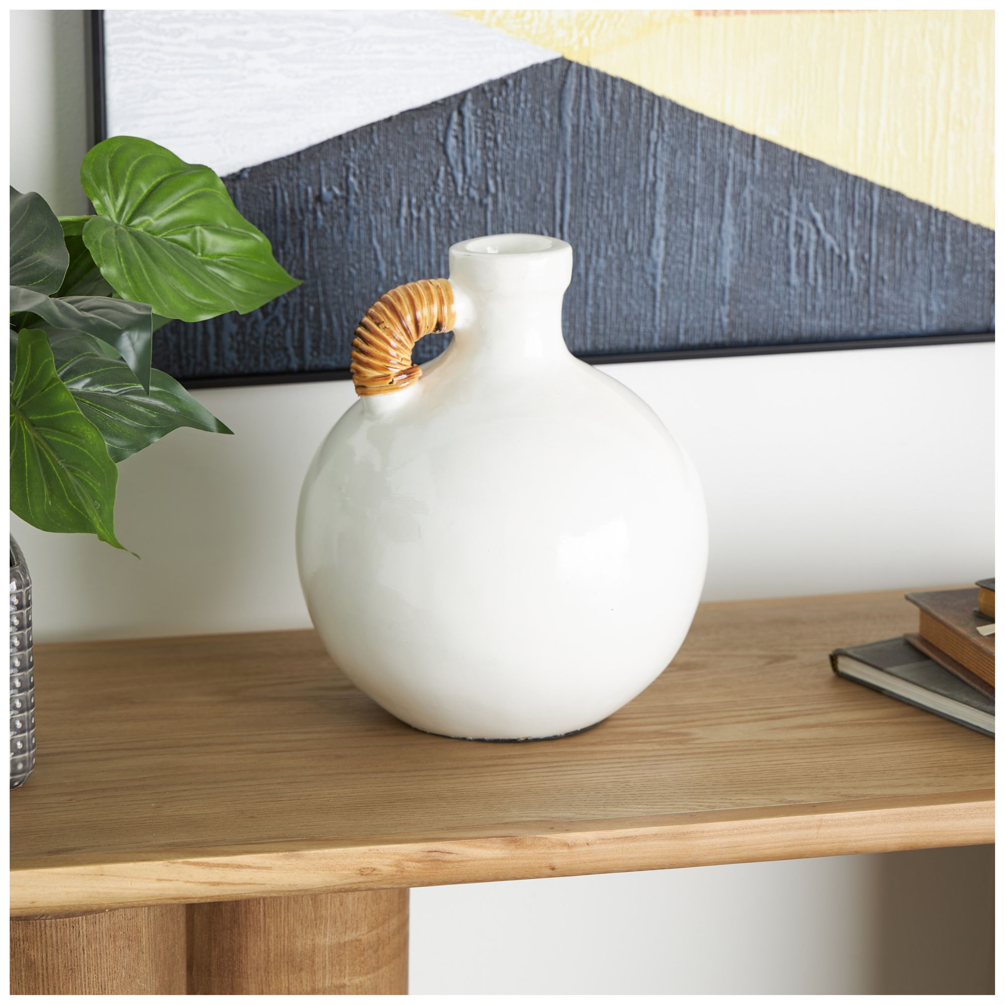6_White Ceramic Modern Vase, 9" x 9" x 11" more views