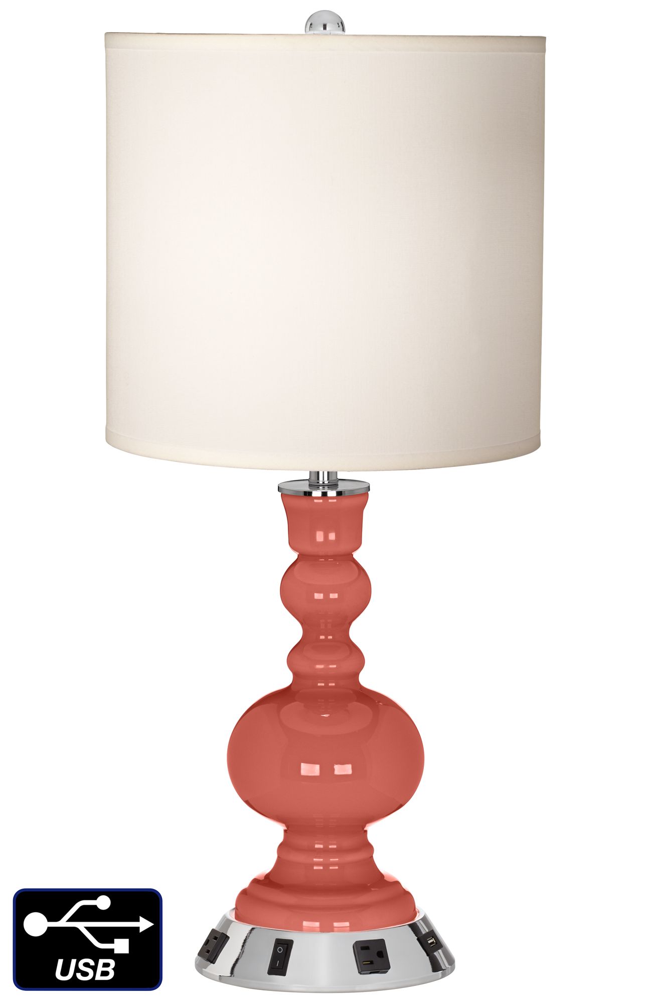 White Drum Apothecary Lamp - 2 Outlets and USB in Coral Reef