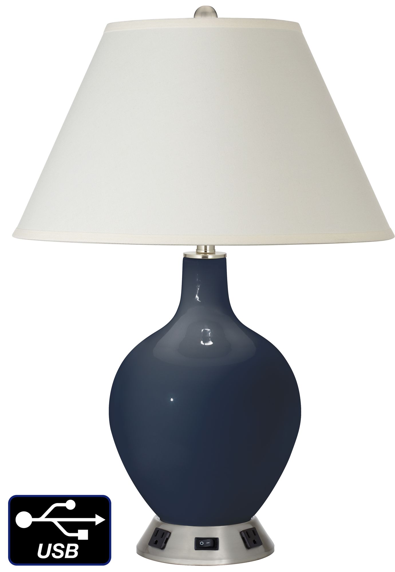 White Empire Table Lamp - 2 Outlets and USB in Naval