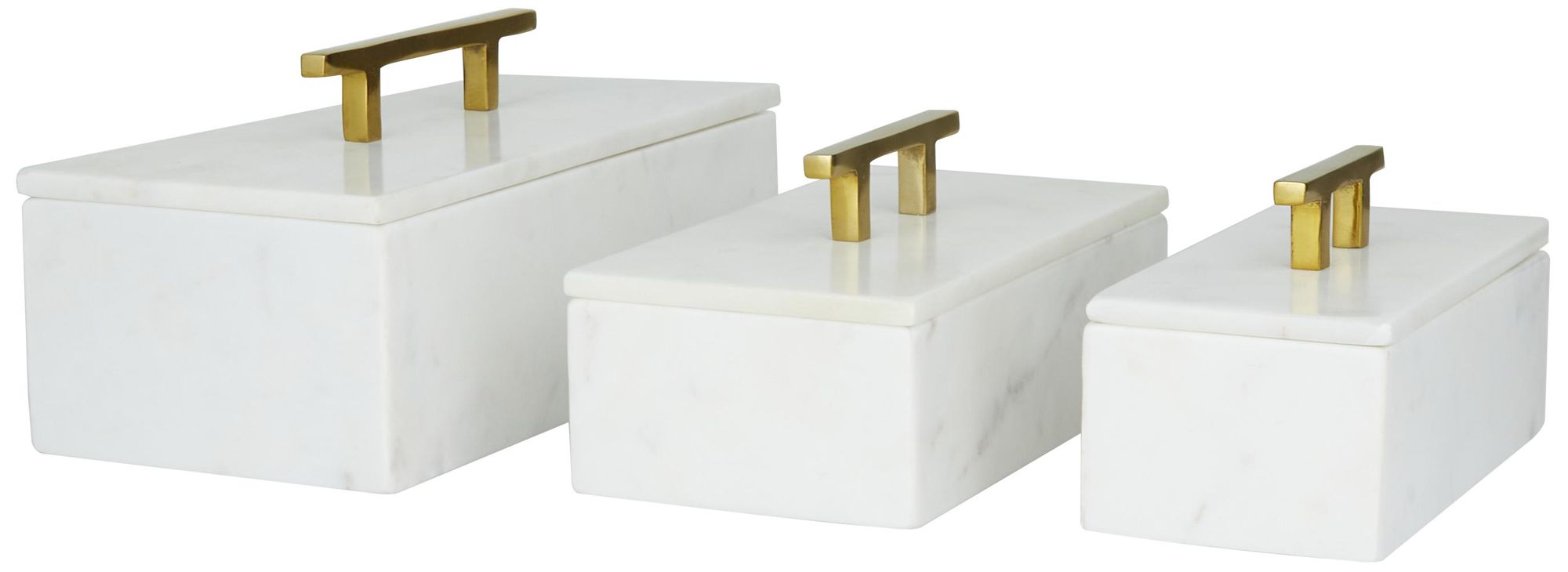 White Marble Decorative Box with Gold Bar Handles, Set of 3 12", 10", 8"W