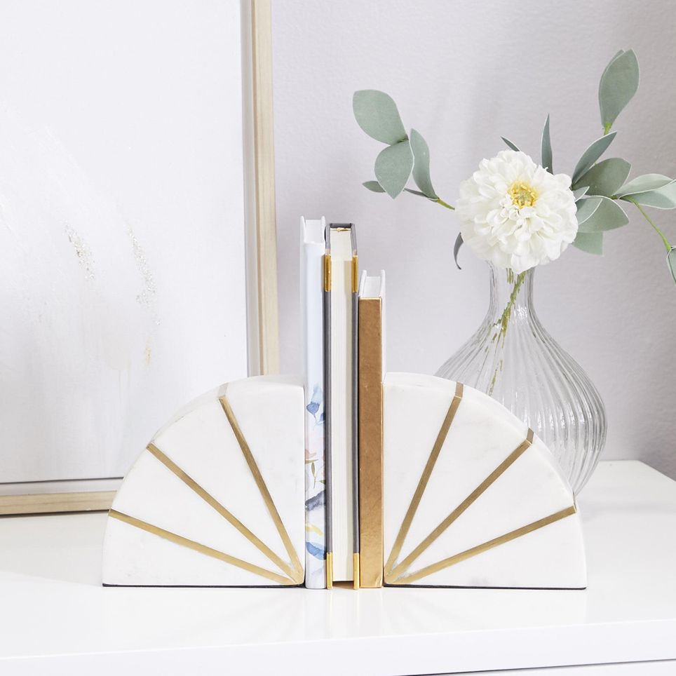 - White Marble Glam Bookends, S/2 5"W, 5"H is produced by Deco USA, LLC.