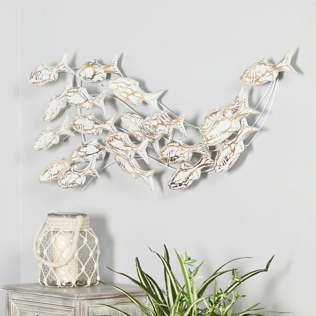 White Wood Coastal Wall Decor, 45" x 5" x 17"