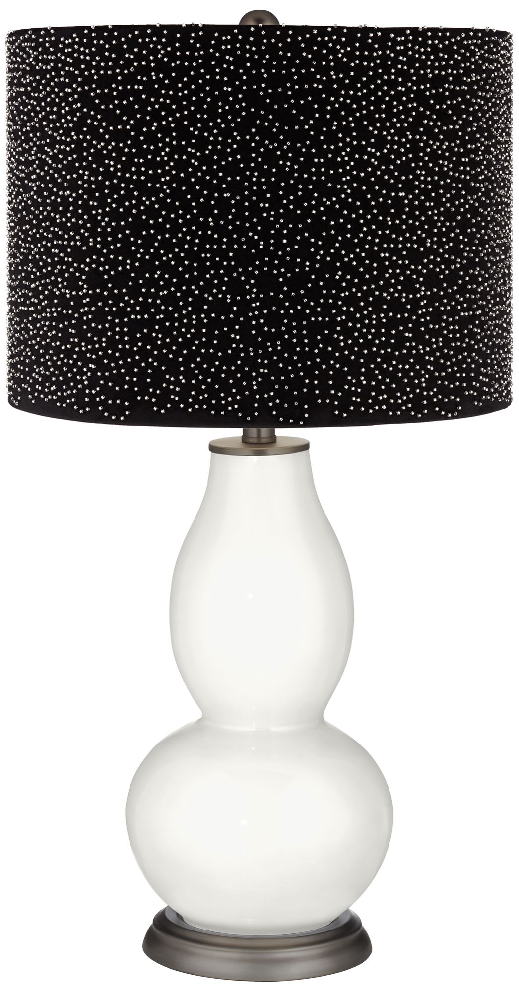 Winter White Double Gourd Table Lamp w/ Black Scatter Gold Shade