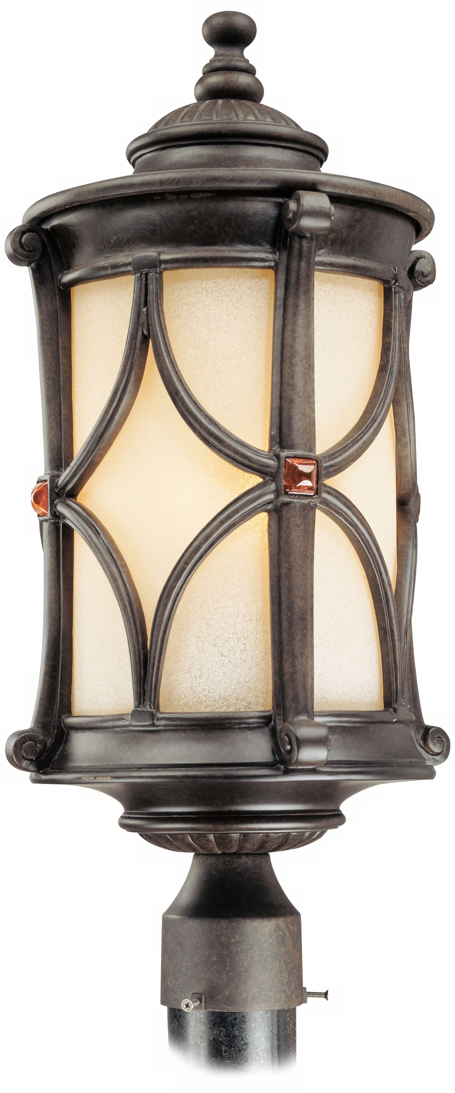 The Woodridge outdoor collection from Troy Lighting offers appealing style reminiscent of classic European architecture. The frame features scrolls and jewel-look details and comes in a rich ancient bronze finish. Dusty amber glass offers a warm glow. A classic, inviting look for your exterior.