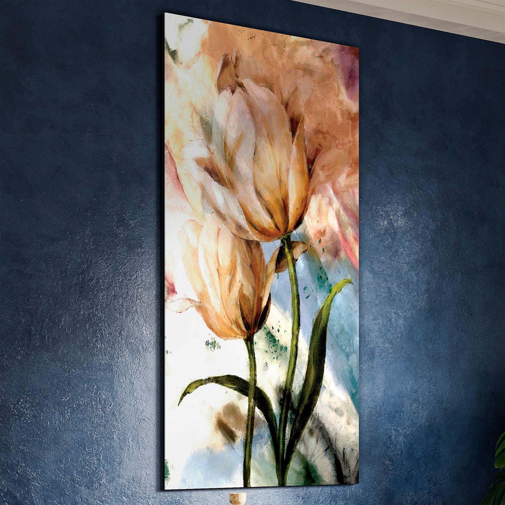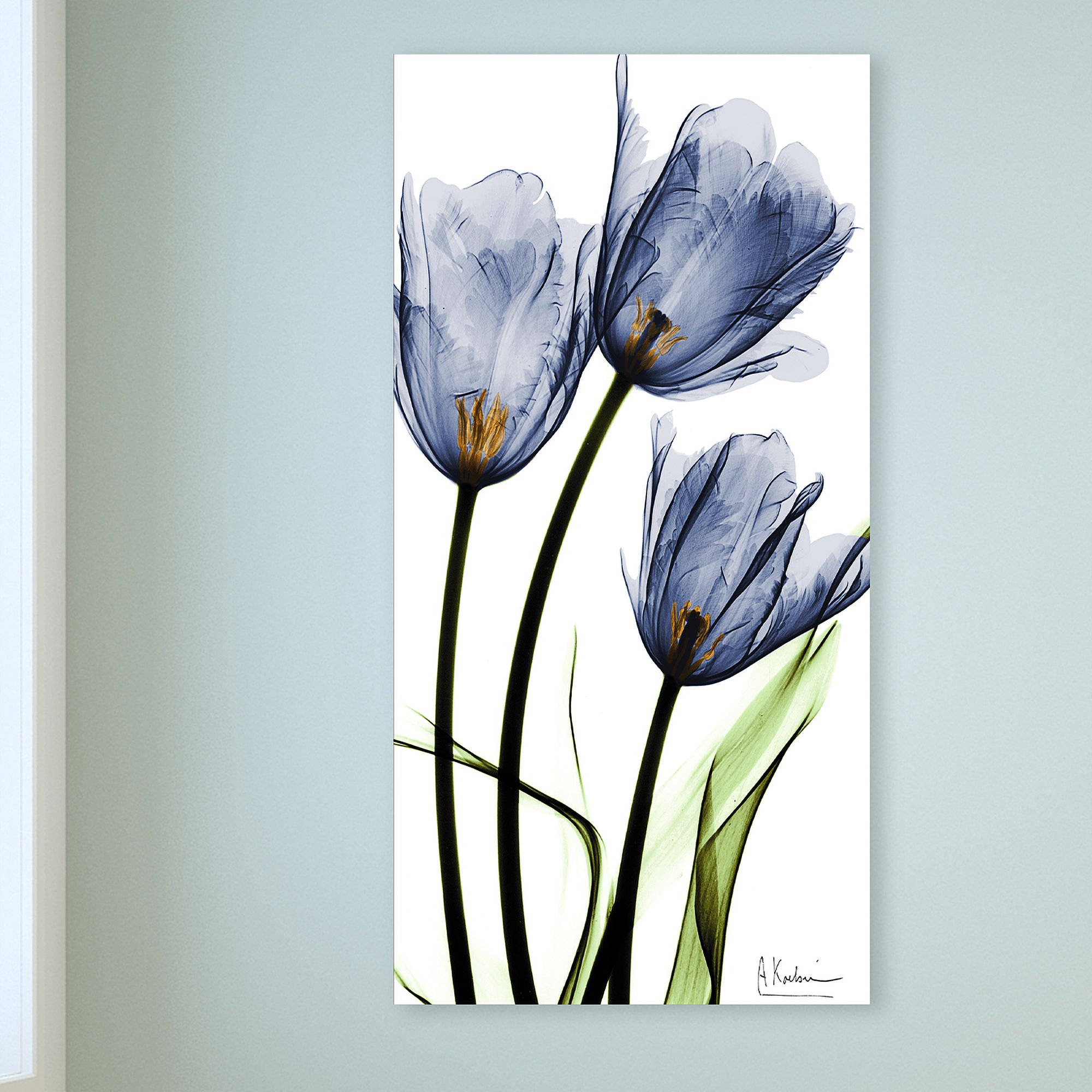 Three Blue Tulips 48" High Tempered Glass Graphic Wall Art