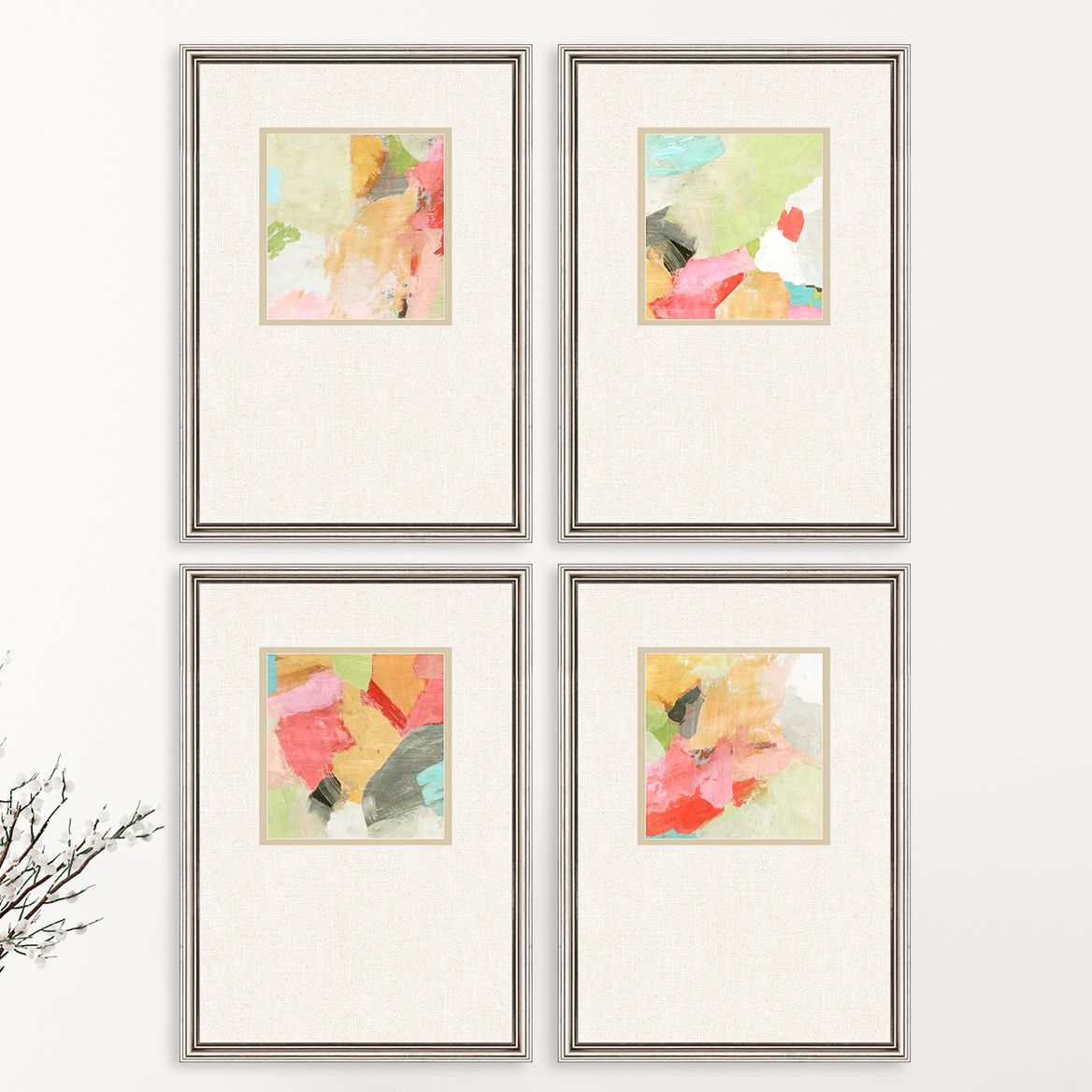 Pastel Splash 22" High 4-Piece Giclee Framed Wall Art Set