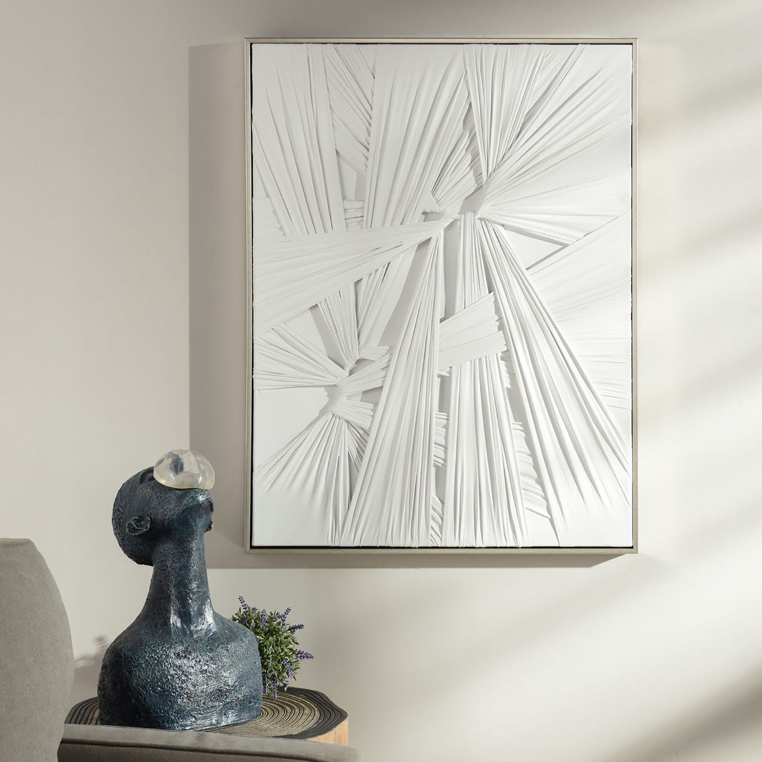 Twisted 39" High White Tied Fabric Framed Canvas Wall Art