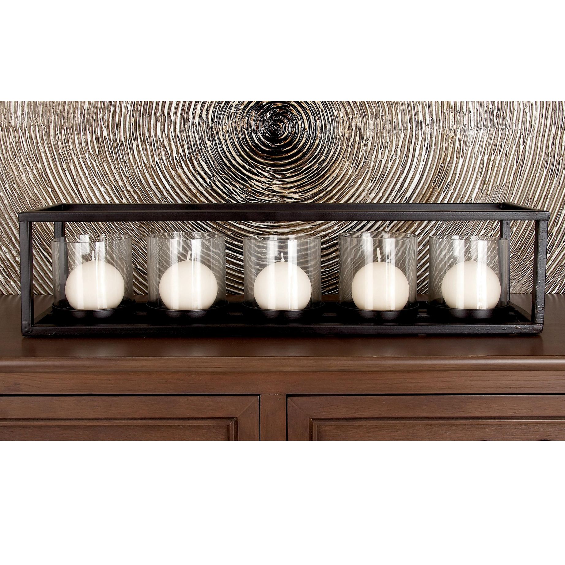 Black Metal Contemporary Candle Lantern, 9" x 9" x 16"